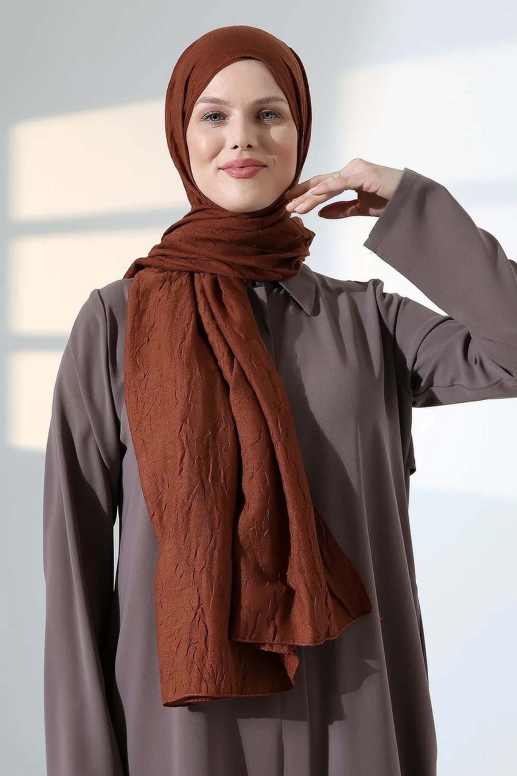Kadın Tesettür Bambu Kraş Şal, Ütü Gerektirmeyen Doğal Hijab Başörtüsü (75x180 cm) - Kahverengi