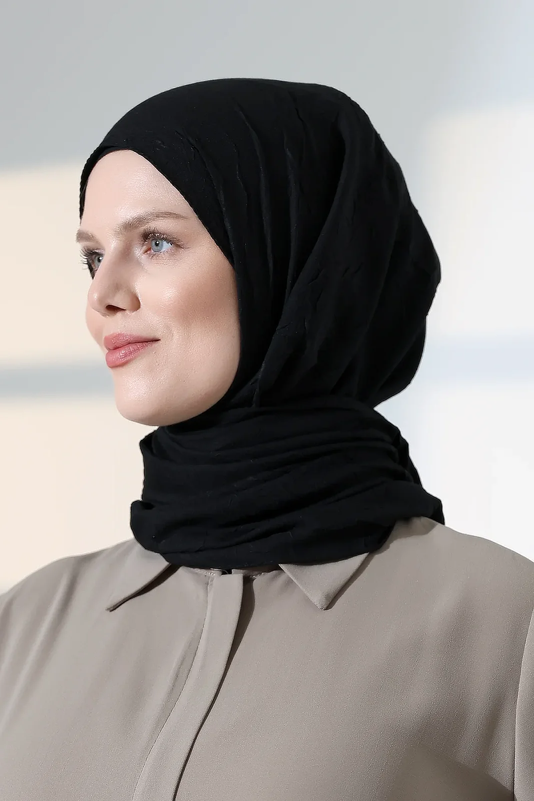 Kadın Tesettür Bambu Kraş Şal, Ütü Gerektirmeyen Doğal Hijab Başörtüsü (75x180 cm) - Siyah