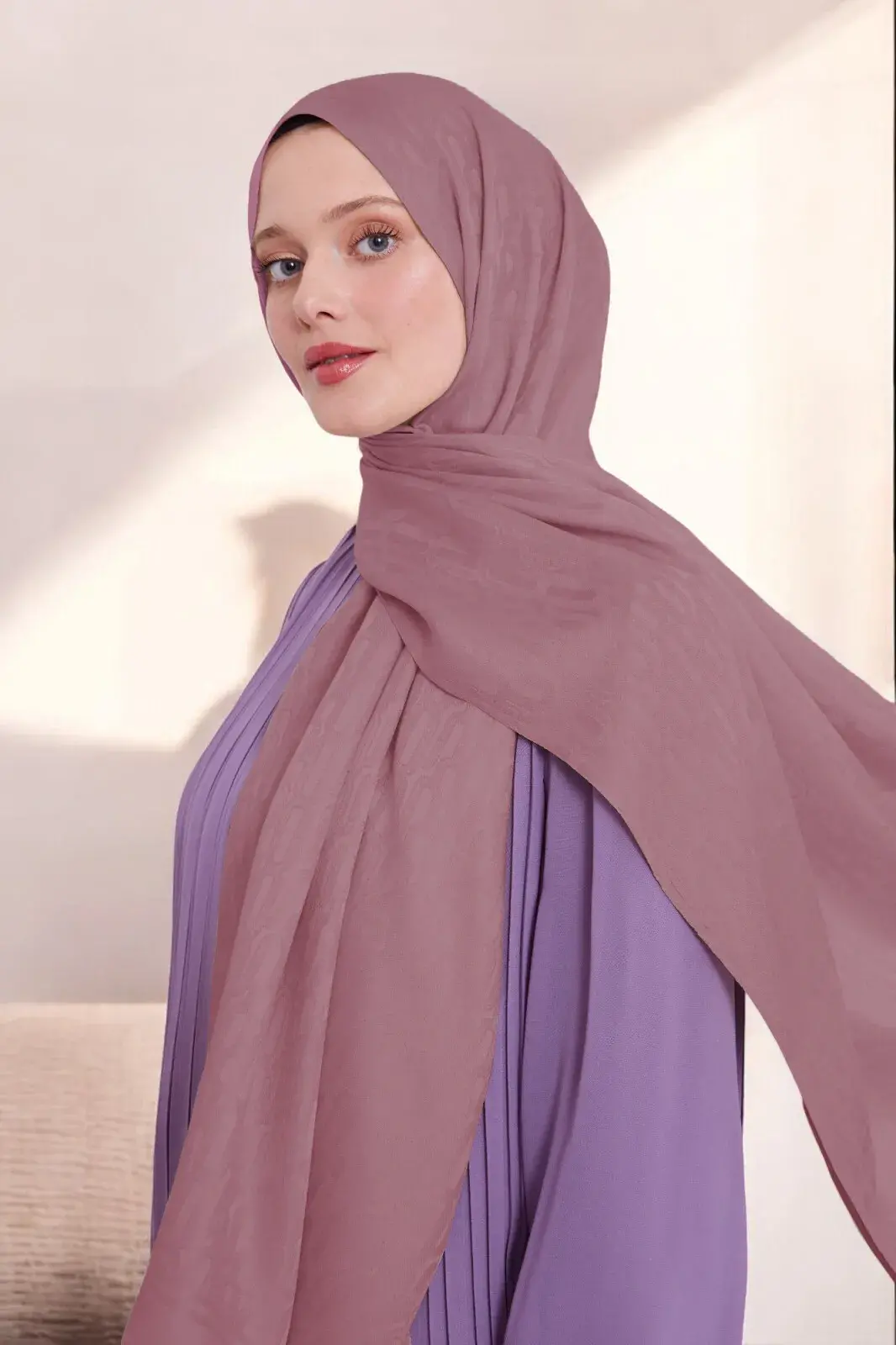 Kadın Zincir Desen Tesettür Blue Jakar Şal Gül Kurusu