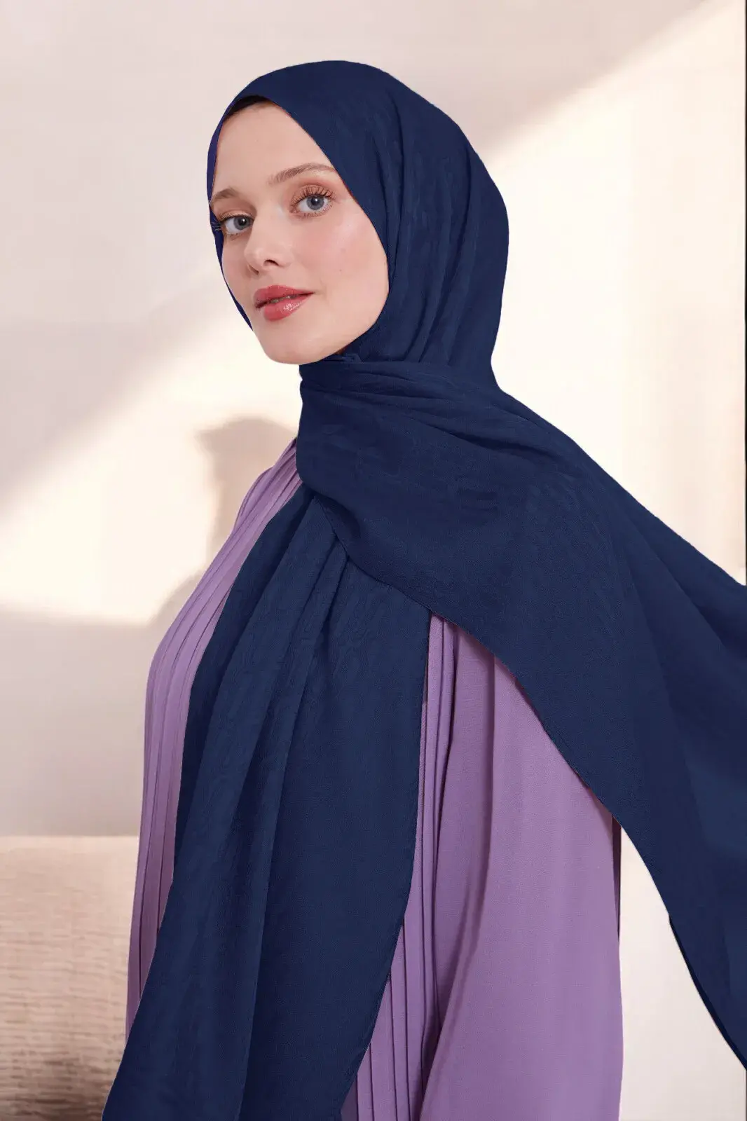 Kadın Zincir Desen Tesettür Blue Jakar Şal Lacivert