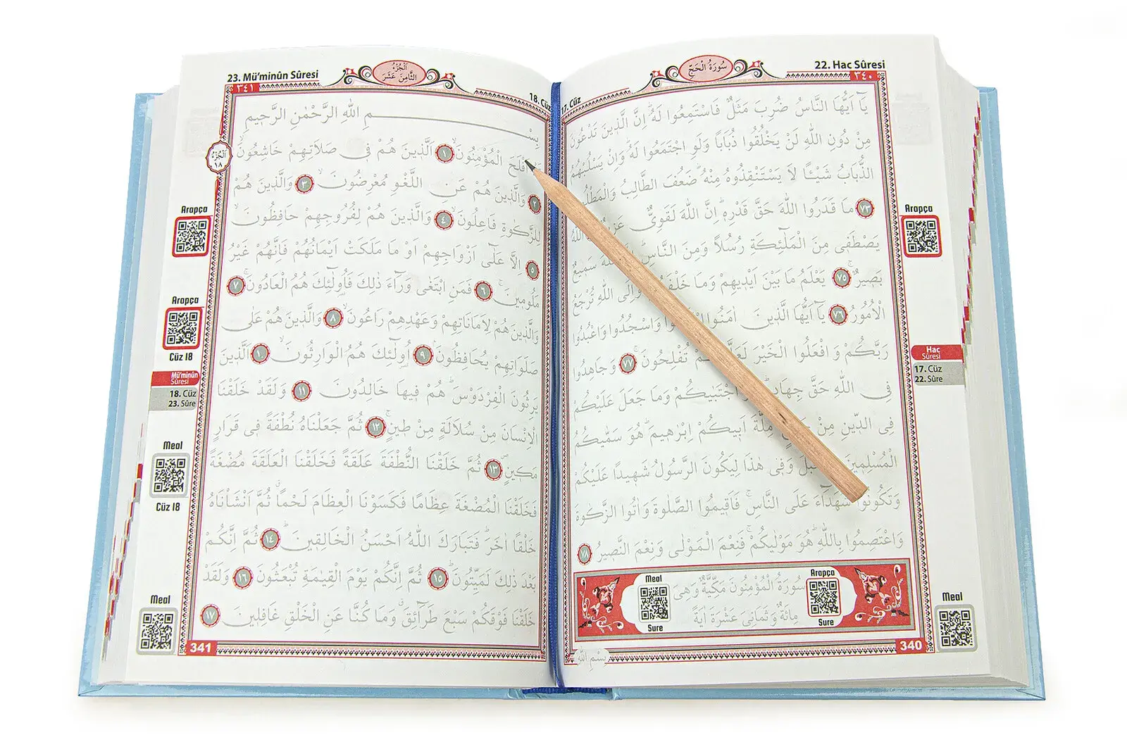 Kalemle Yazılabilen Orta Boy Gölgeli Kuranı Kerim Mavi