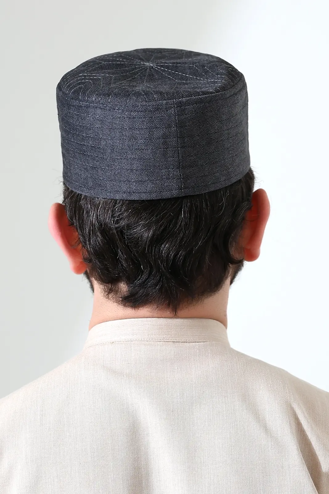 Kapitone Desenli Kadife Kalıp Namaz Takkesi Koyu Gri