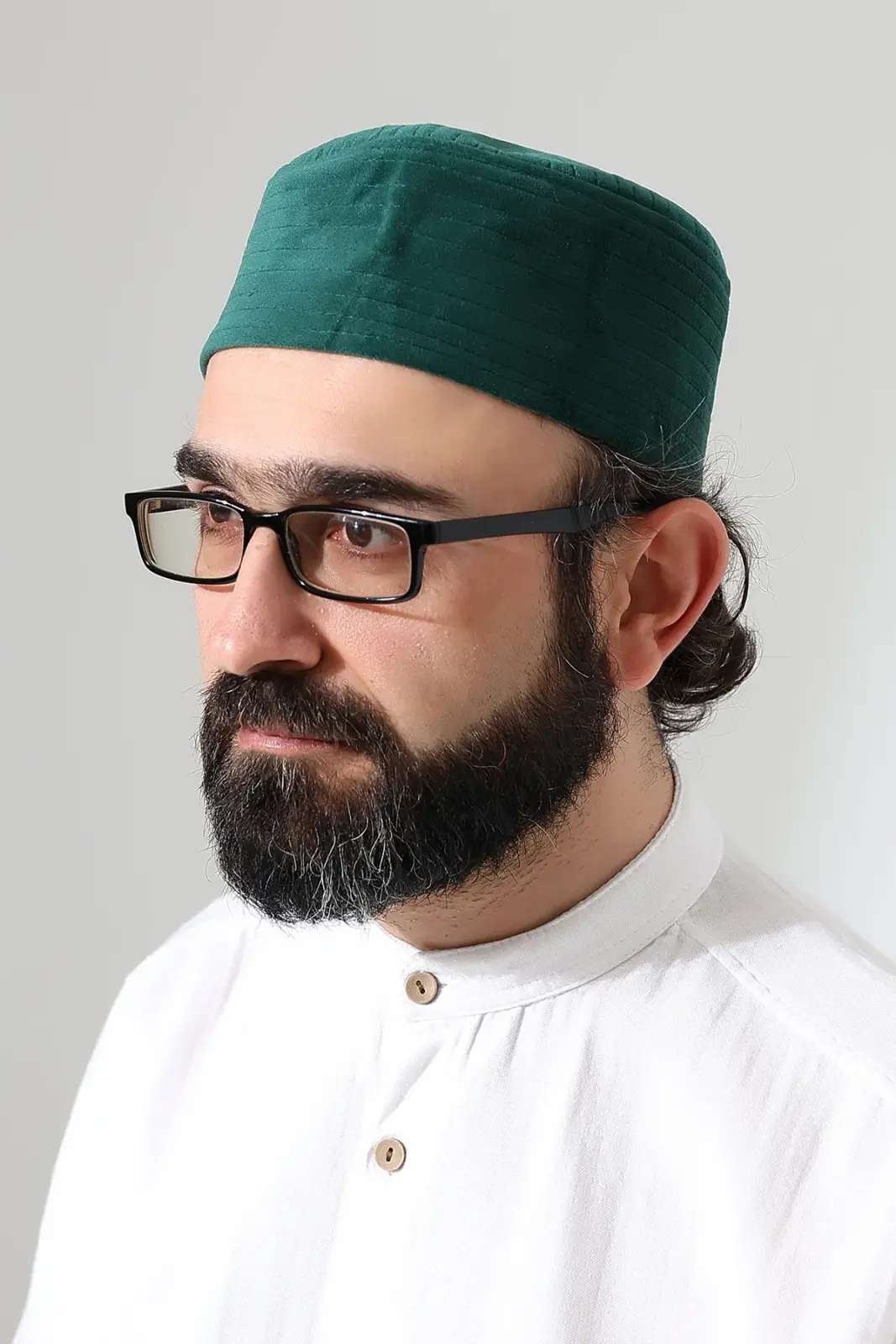 Kapitone Yıldız Desenli Kadife Kalıp Namaz Takkesi Yeşil