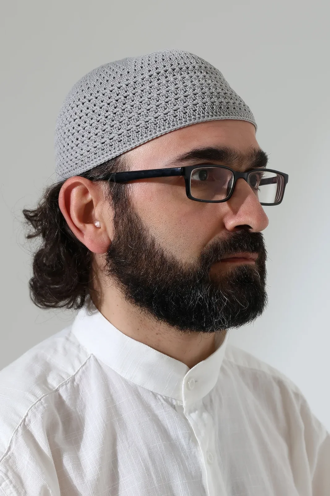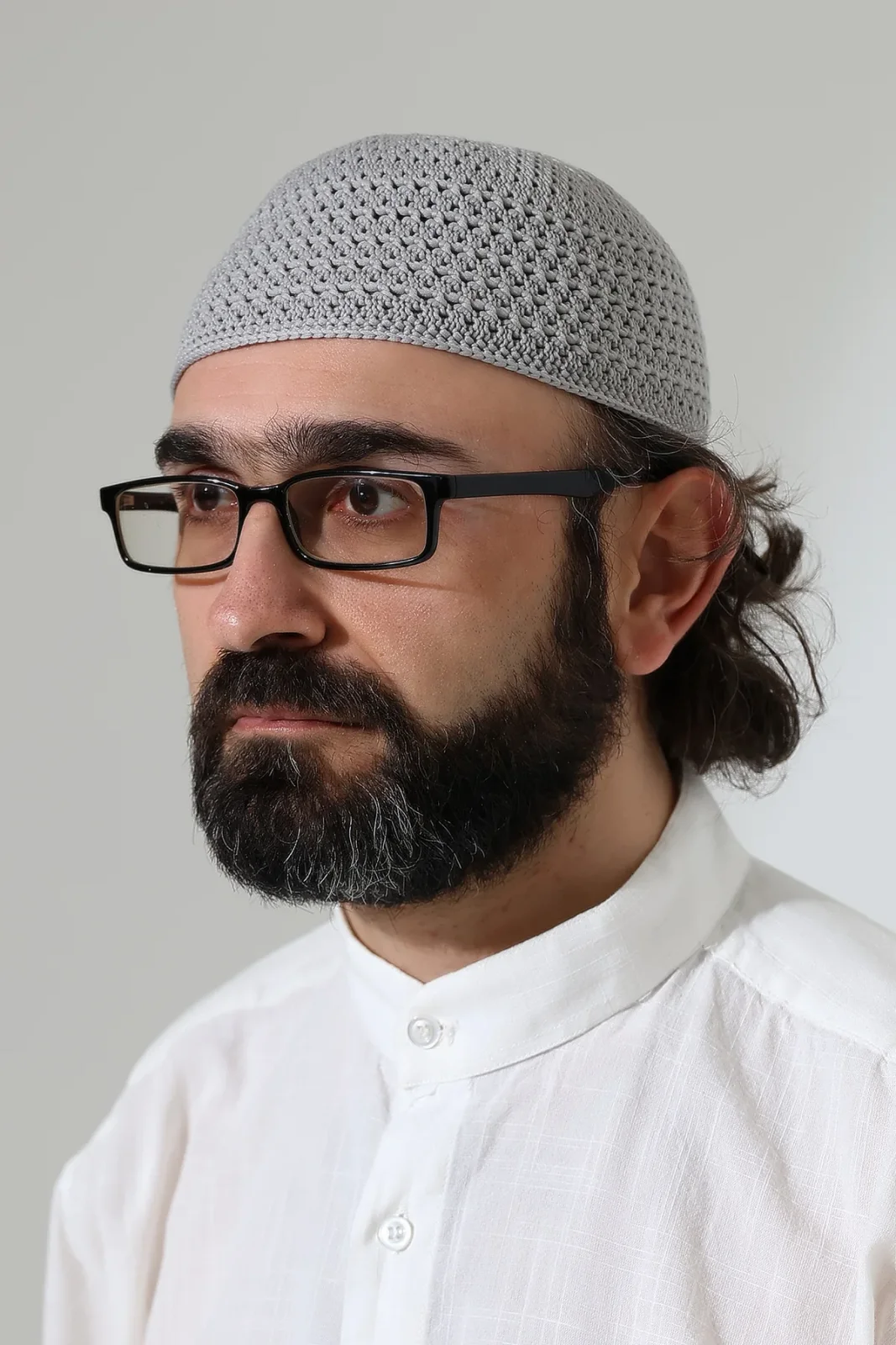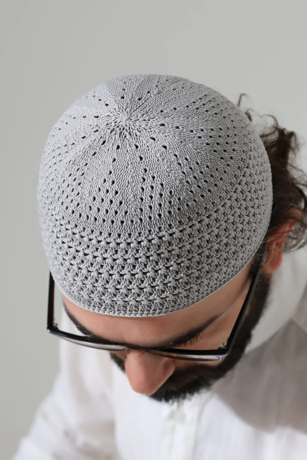 Kehribar Örme Namaz Takkesi, Örgü Motifli Takke Gri
