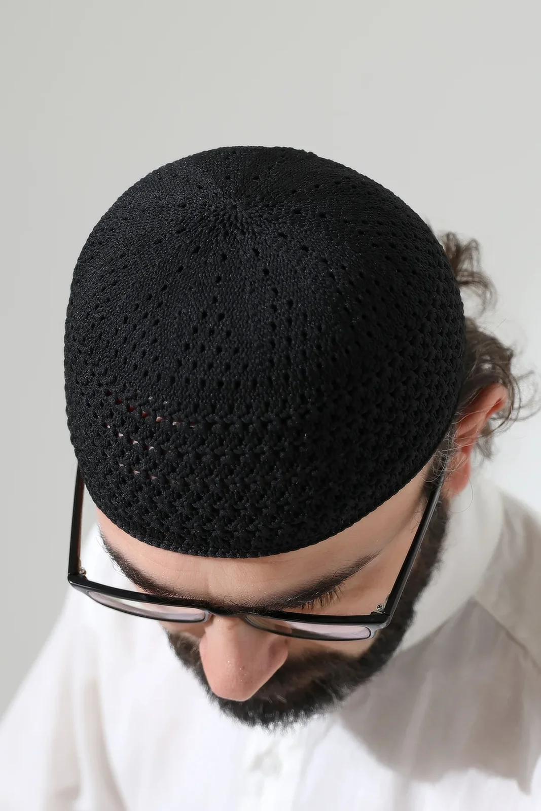 Kehribar Örme Namaz Takkesi, Örgü Motifli Takke Siyah