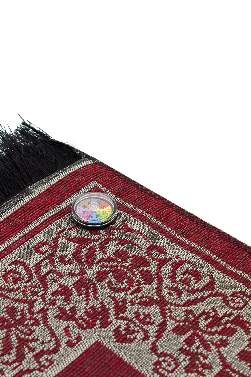 Kıbleyi Gösteren Pusulalı Kırmızı Seccade