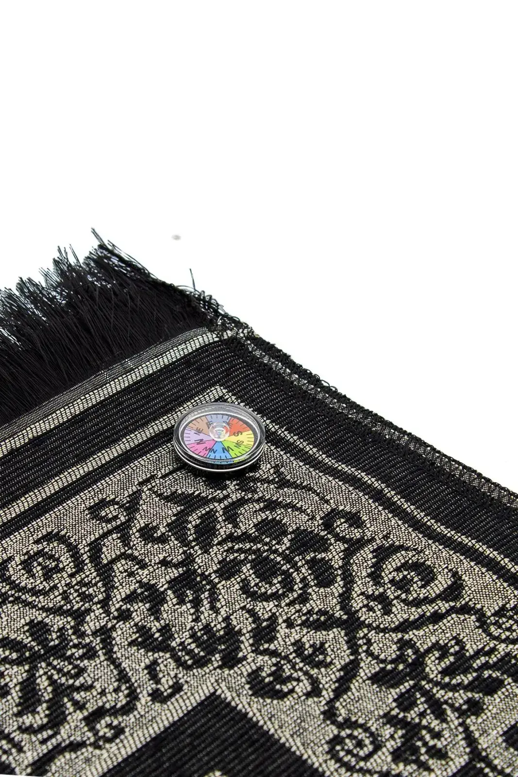 Kıbleyi Gösteren Pusulalı Siyah Seccade