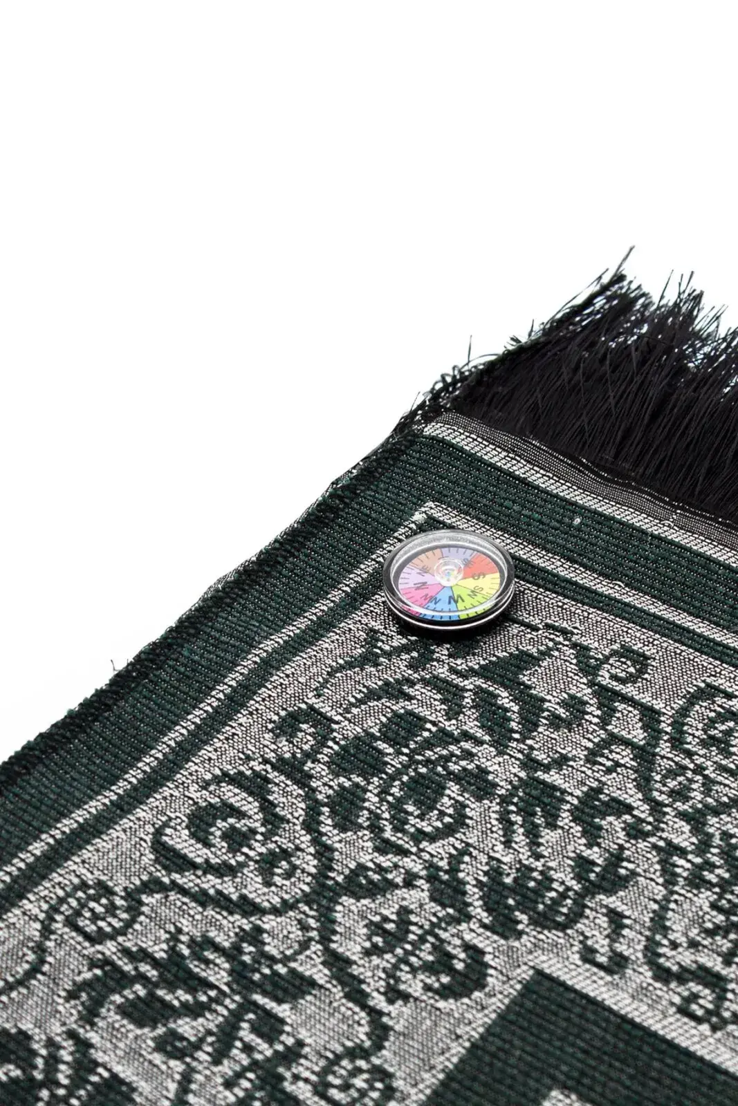 Kıbleyi Gösteren Pusulalı Yeşil Seccade