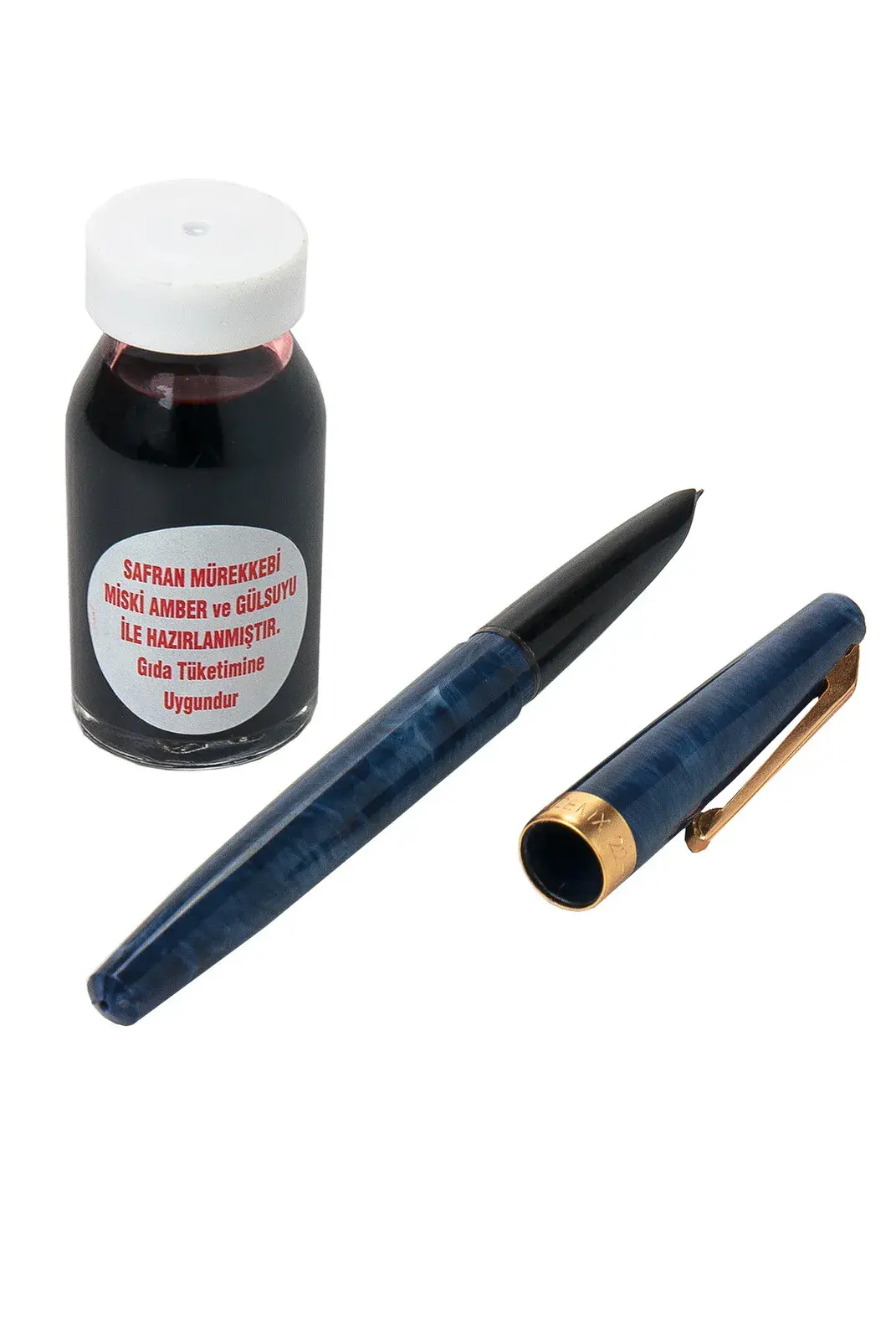 Kırmızı Safran Mürekkebi ve Lacivert Renk Safran Kalemi Seti