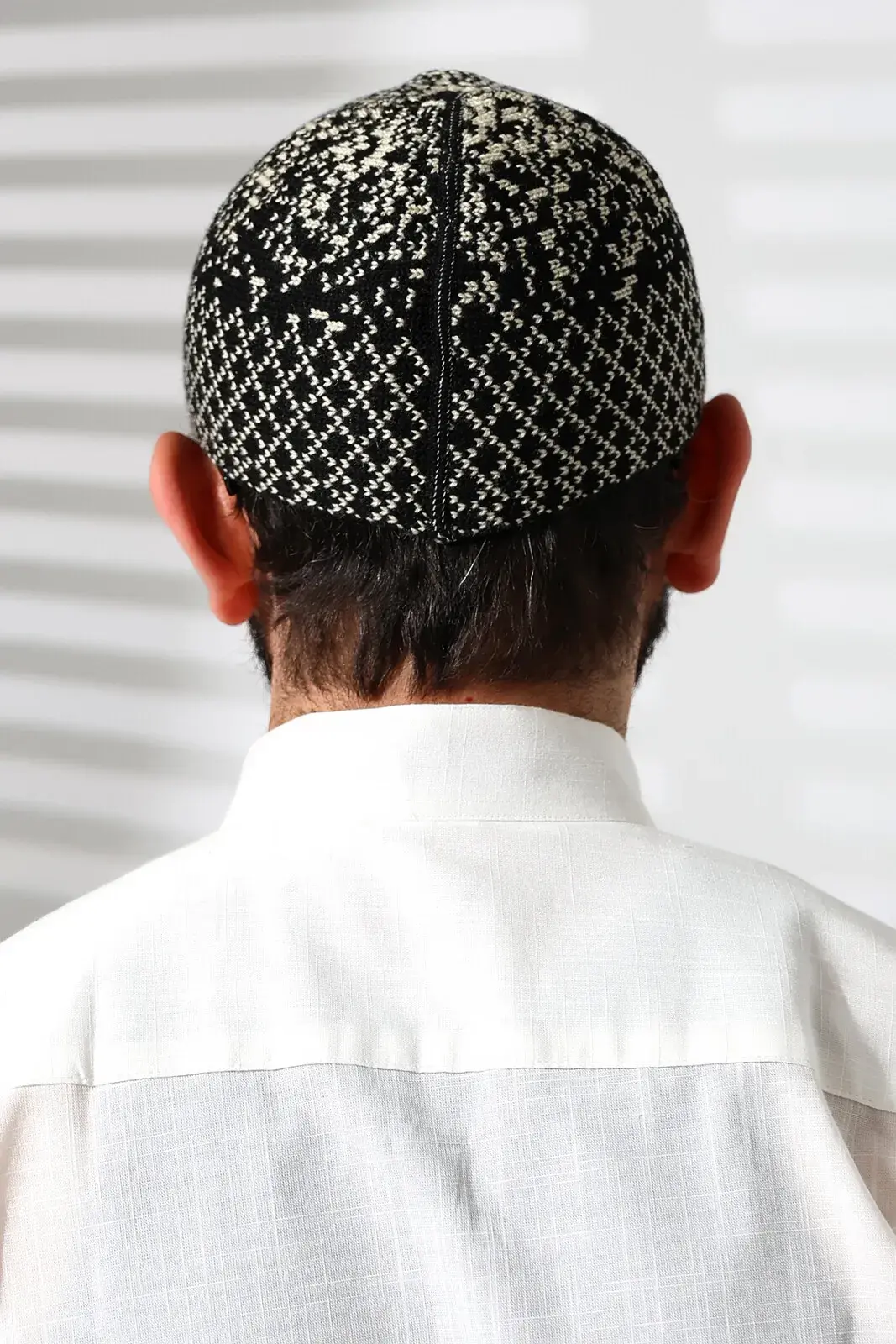Kışlık Karyağdı Desenli Orlon Takke Siyah-Bej