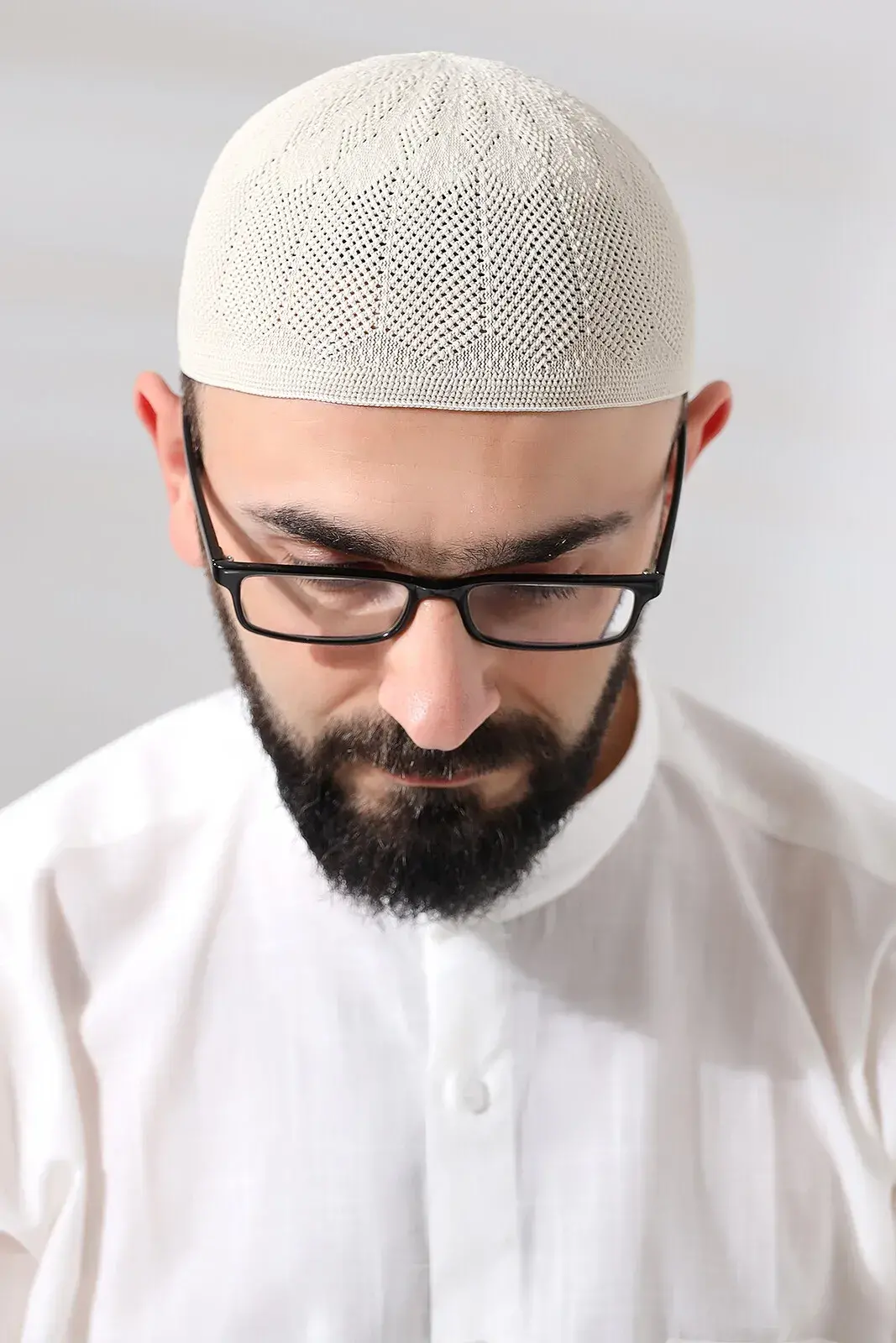 Knitted Prayer Skull with Cream Sapphire Lace Detail