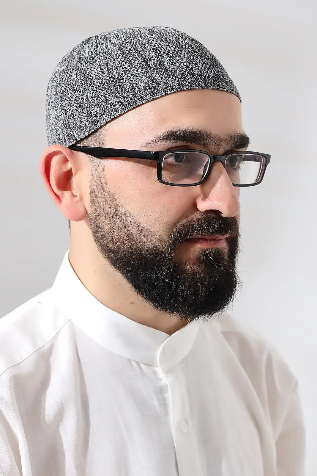 Knitted Prayer Skull with Melange Sapphire Lace Detail
