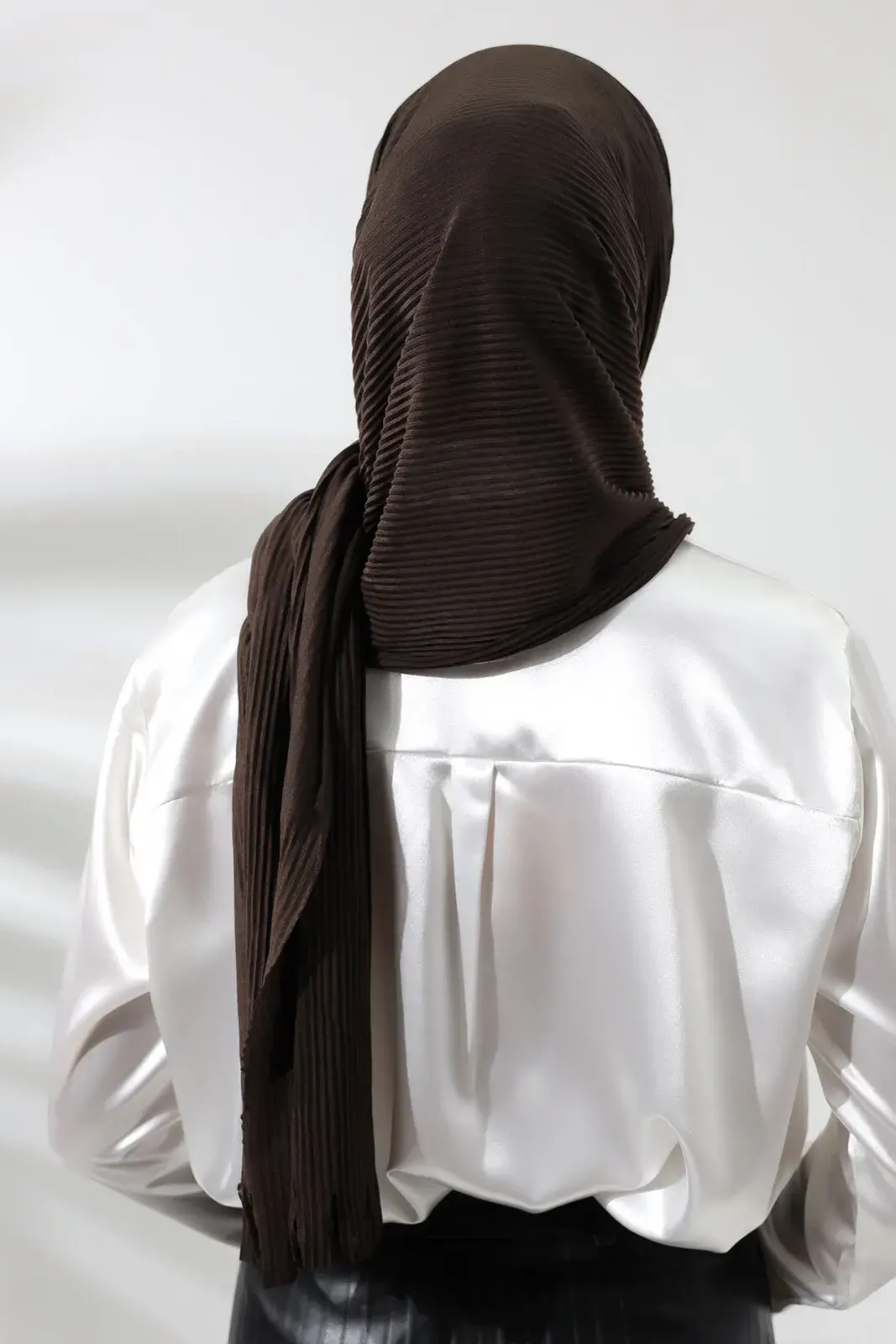 Koyu Kahve Tesettür Hazır Pratik Fitilli Pamuklu Şal