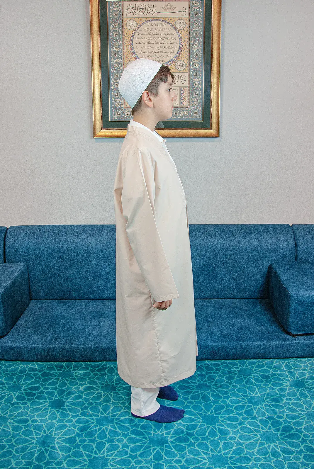 Bu namaz cübbesi, rahat kesimi ve düğmesiz önü açık tasarımıyla çocuklar için hareket özgürlüğü sağlar, bu da ibadet sırasında rahatlıkla giyilmesini sağlar. Hem gündelik kullanıma hem de özel ibadet anlarına uygun bir kıyafettir.
