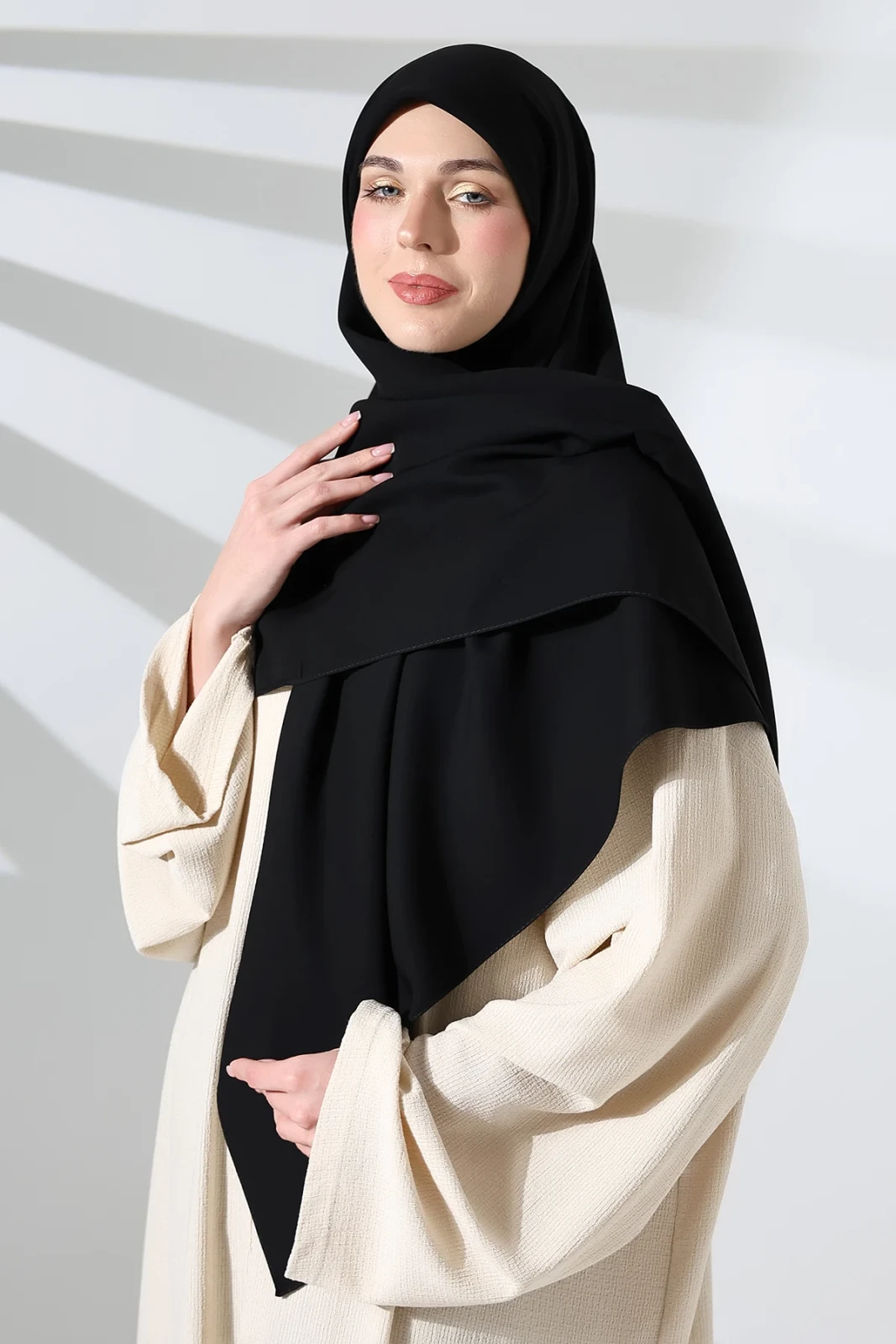 Zarif ve Sade Stil: Krep kumaş Büyük Boy Eşarp, tesettür giyim koleksiyonunuza zarif ve sade bir dokunuş katar.