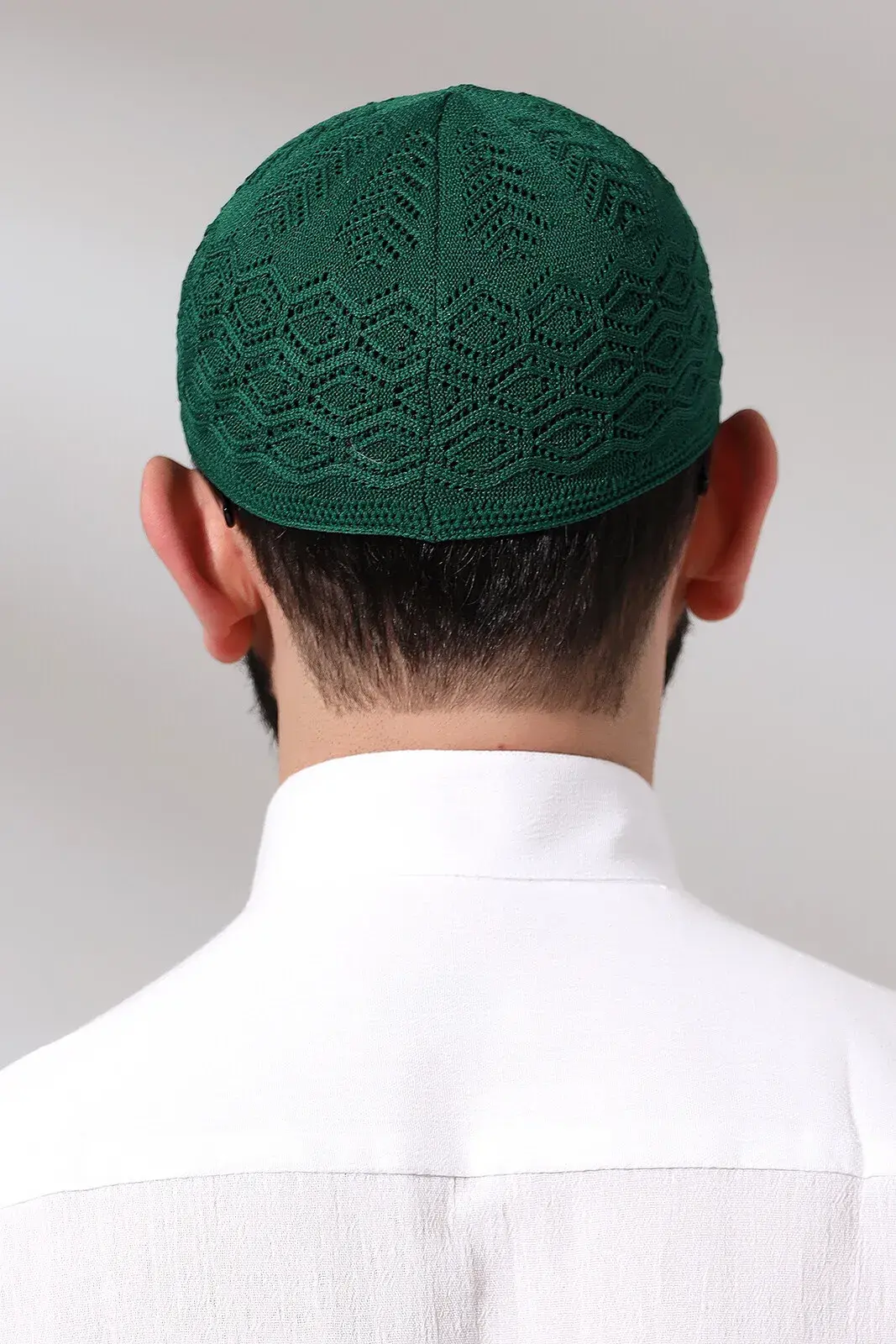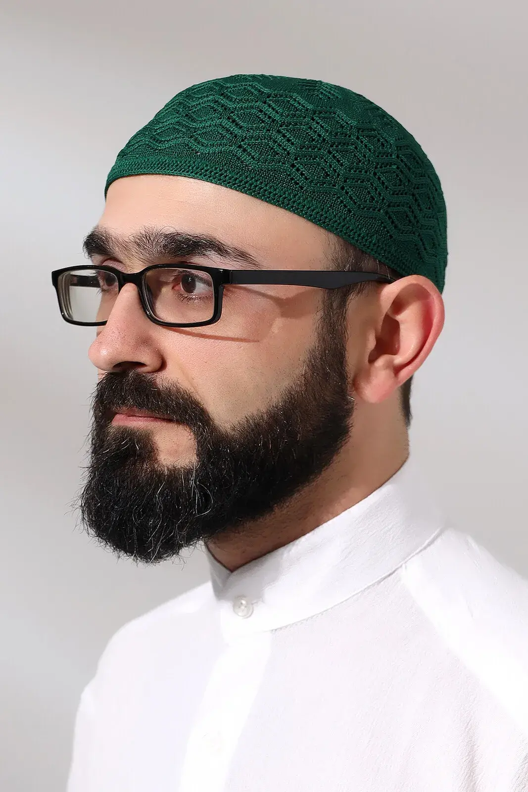 Kubbetül Hadra Platinum Series Lace Detailed Knitted Prayer Skull Green