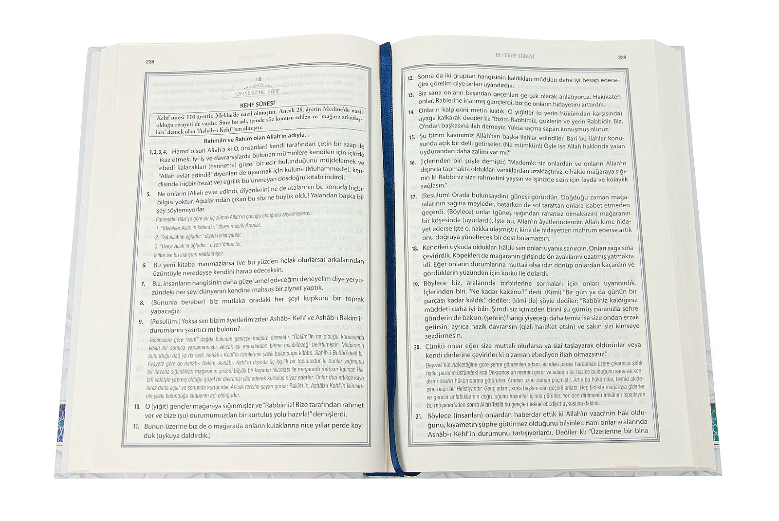 Ürün, açıklamalı meâl yapısıyla sadece tilavet değil, anlamı daha iyi kavramaya yönelik okumalar için de uygundur. Geniş sayfa ölçüsü sayesinde yazılar rahat takip edilebilir. Ciltli yapısı ise ürüne hem dayanıklılık hem de estetik bir görünüm kazandırır.