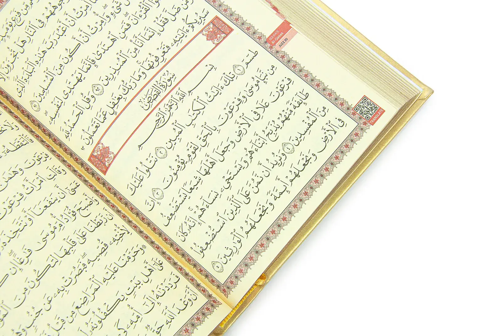 Kuran-ı Kerim'i mükemmel bir şekilde sunan bu özel ürün, her Müslüman'ın evinde bulunması gereken önemli bir kitaptır. Medine Mushafı'na özgü güzel ve estetik yazı stili olan Medine Hatlıdır. Lüks ve dayanıklı termo deri kaplaması, Kuran'ın uzun süre dayanmasını sağlar ve kullanım sırasında konfor sağlar. Karekodu kullanarak Kuran metnini sekiz farklı hafızın tilavetiyle dinleyebilirsiniz, böylece Kuran'ı anlamaya ve hafızlık bilgilerinizi geliştirmeye olanak sağlar.