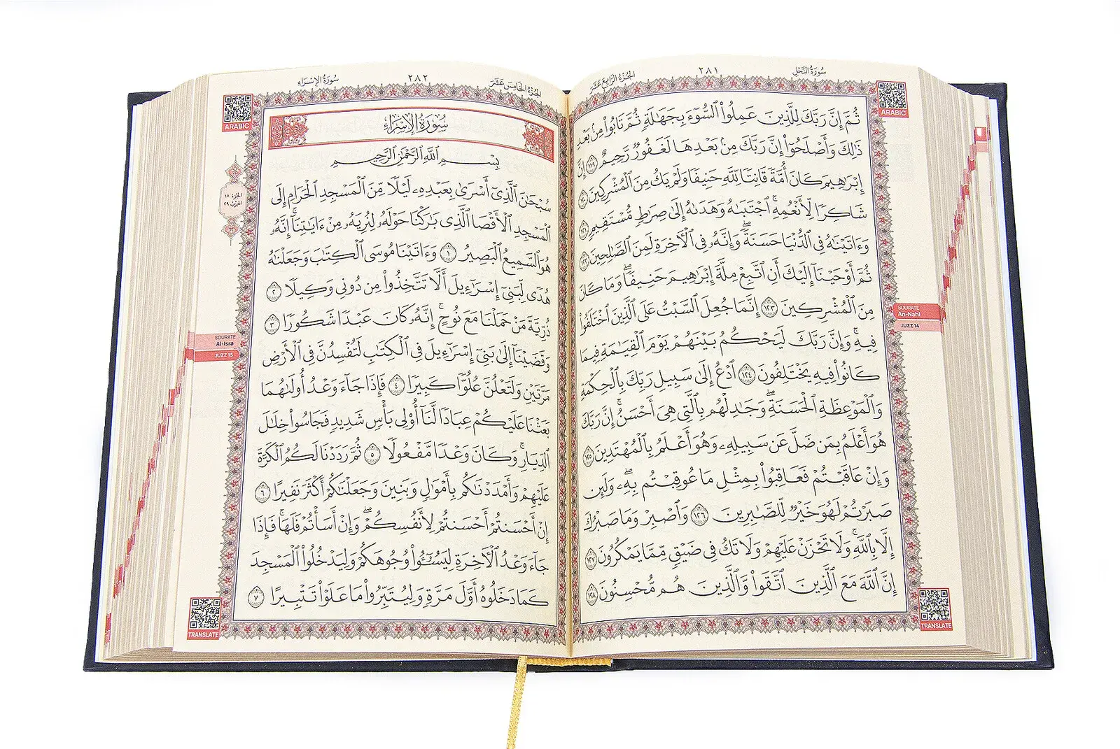 Kuran-ı Kerim'i mükemmel bir şekilde sunan bu özel ürün, her Müslüman'ın evinde bulunması gereken önemli bir kitaptır. Medine Mushafı'na özgü güzel ve estetik yazı stili olan Medine Hatlıdır. Lüks ve dayanıklı termo deri kaplaması, Kuran'ın uzun süre dayanmasını sağlar ve kullanım sırasında konfor sağlar. Karekodu kullanarak Kuran metnini sekiz farklı hafızın tilavetiyle dinleyebilirsiniz, böylece Kuran'ı anlamaya ve hafızlık bilgilerinizi geliştirmeye olanak sağlar.
