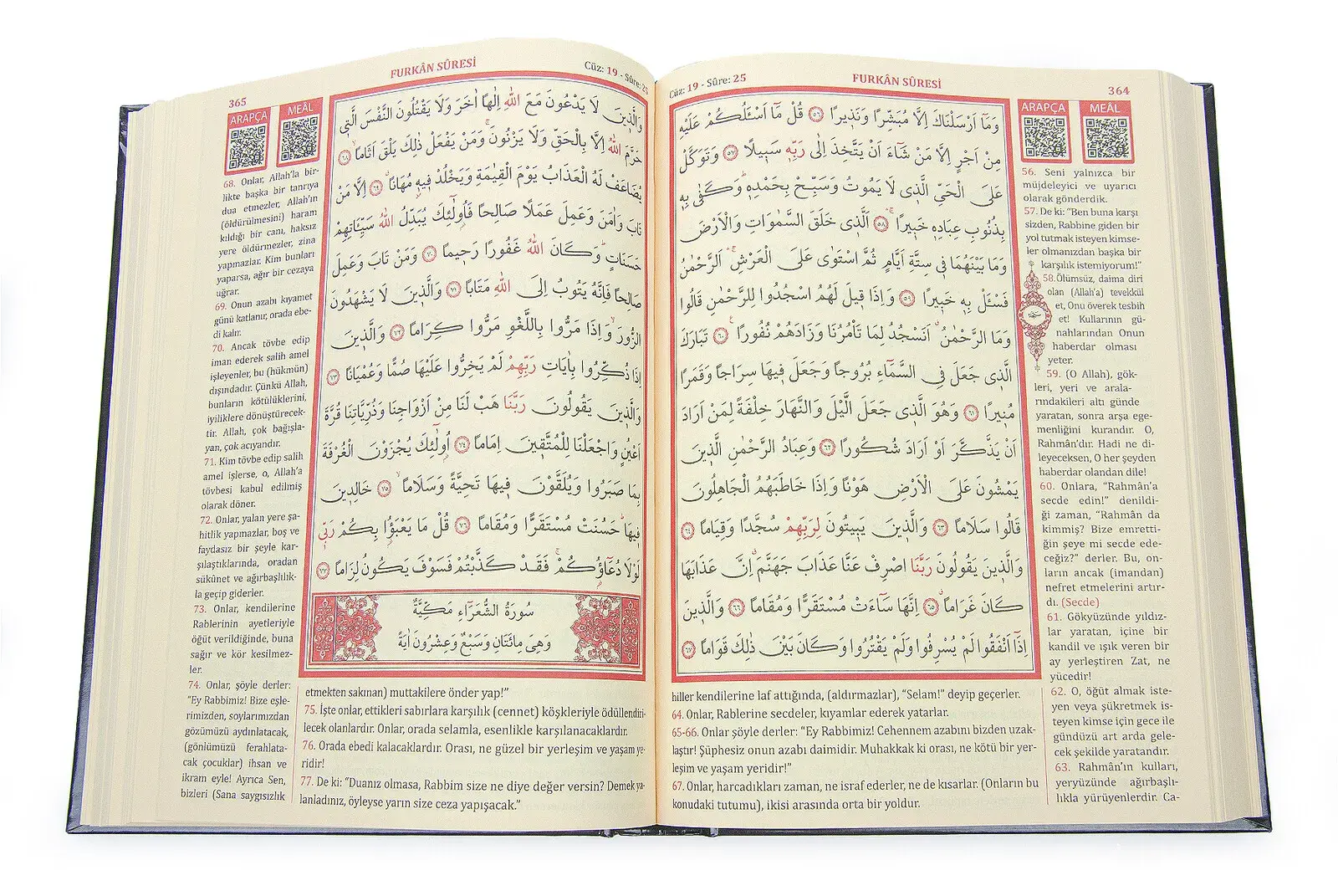 Kuran-ı Kerim'in her sayfasında buluna QR kodu, akıllı telefon ve tabletlerinizden okutarak Kuran-ı Kerim'imizin ilgili sayfasını Arapça okunuşunu ve Türkçe Mealini sesli olarak dinleyebilirsiniz