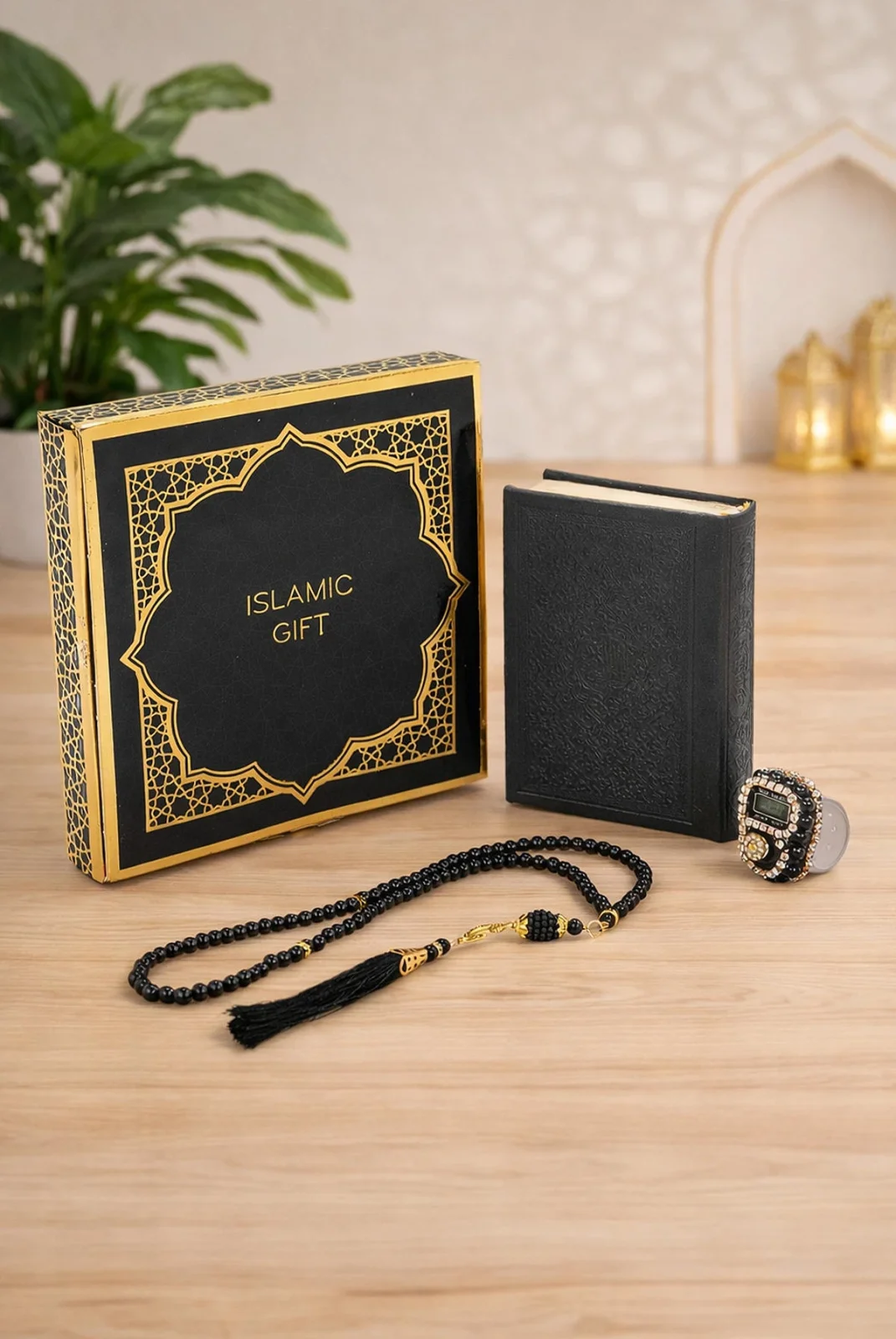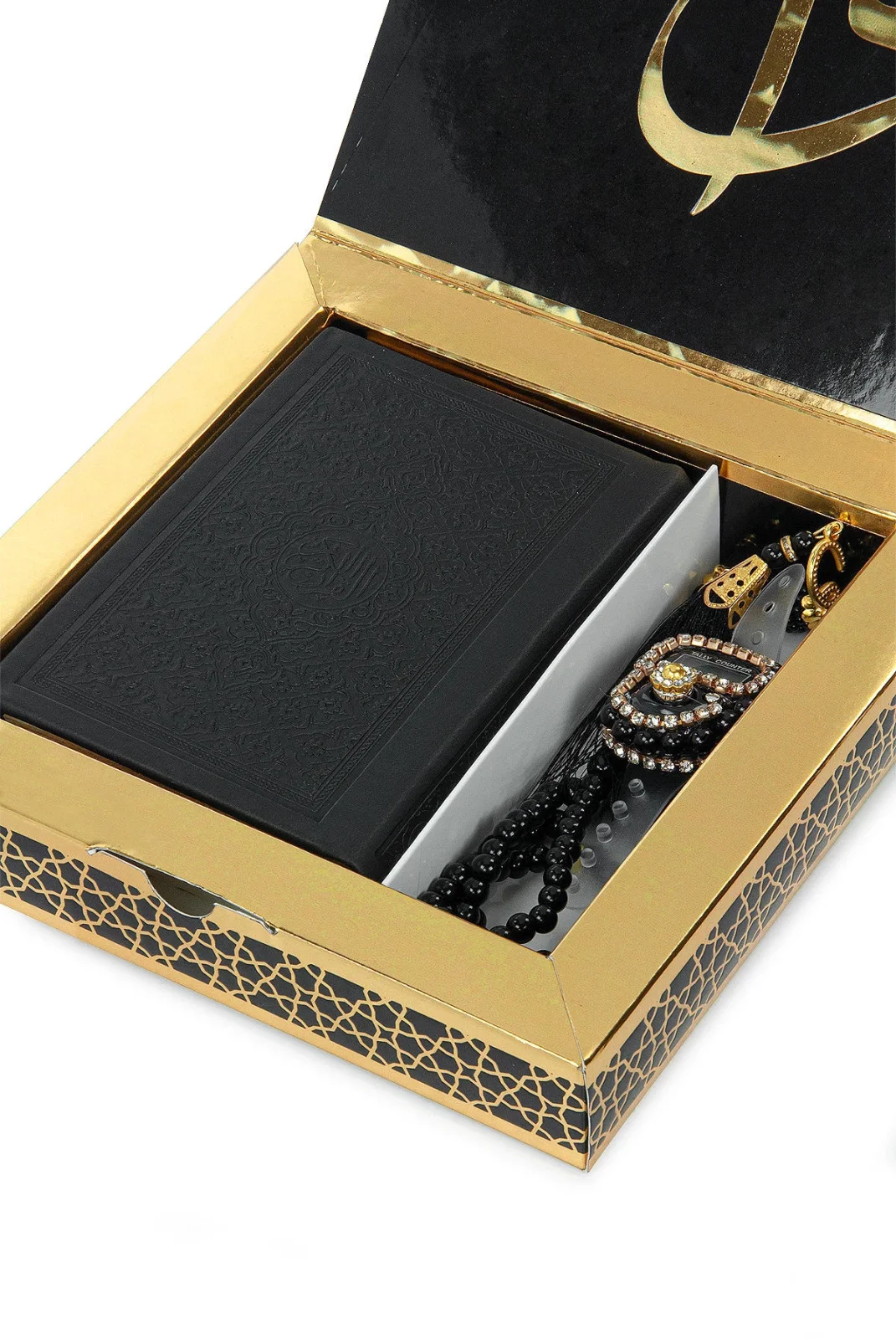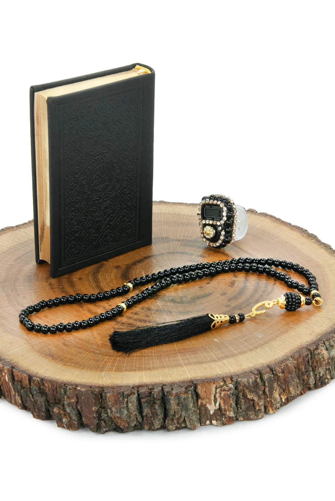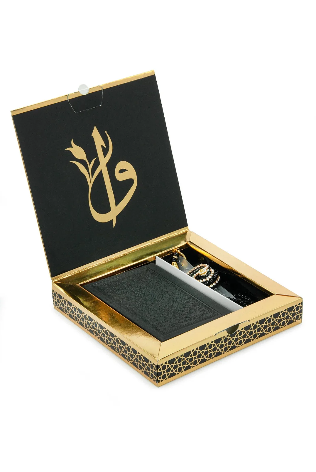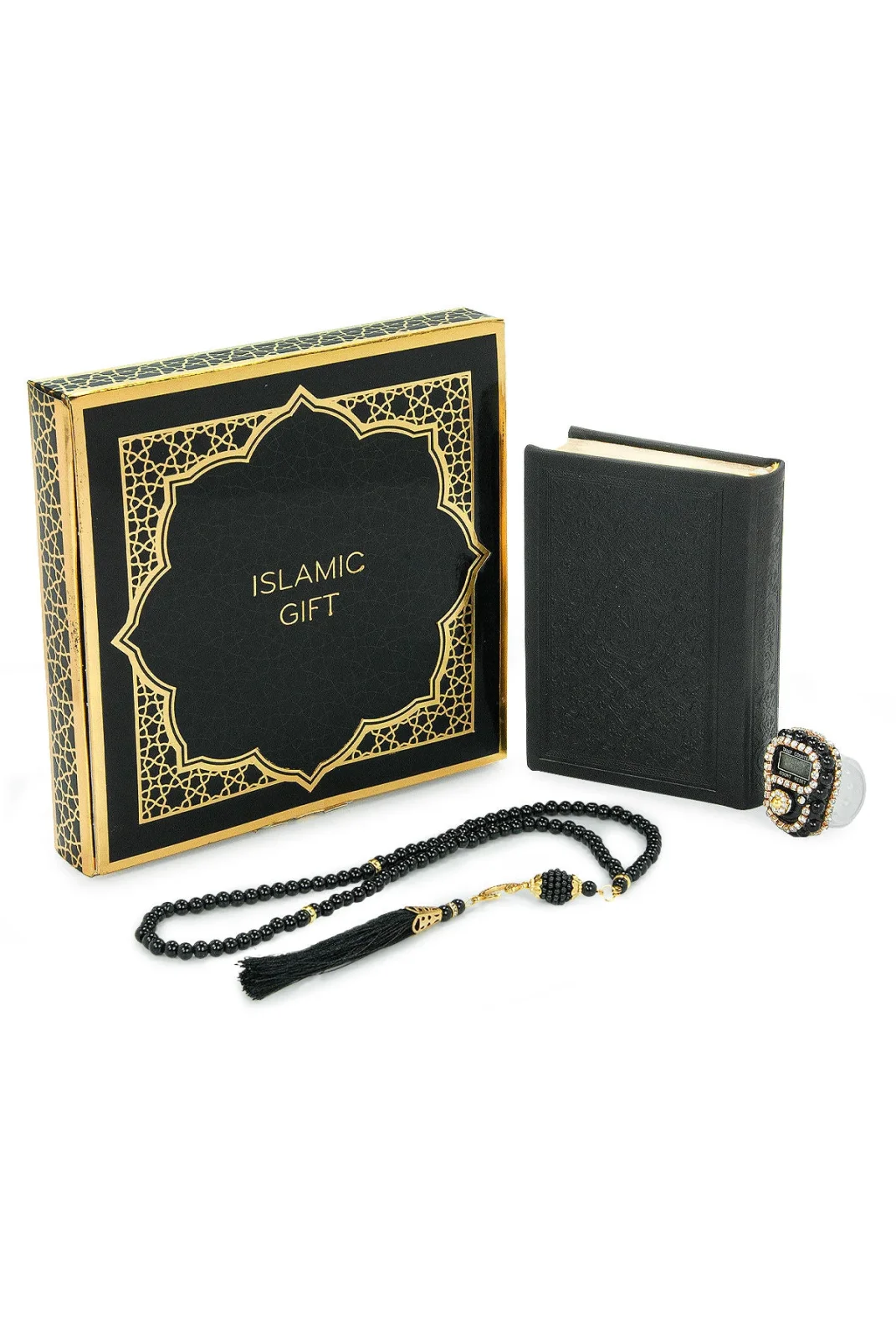 Kutulu Kuranı Kerim Seti | Tesbih + Zikirmatik Hediye Seti - Siyah