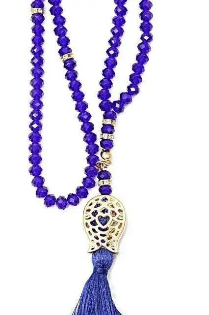 Tulip Patterned Tasseled 99 Piece Crystal Tasbih - 6mm Purple