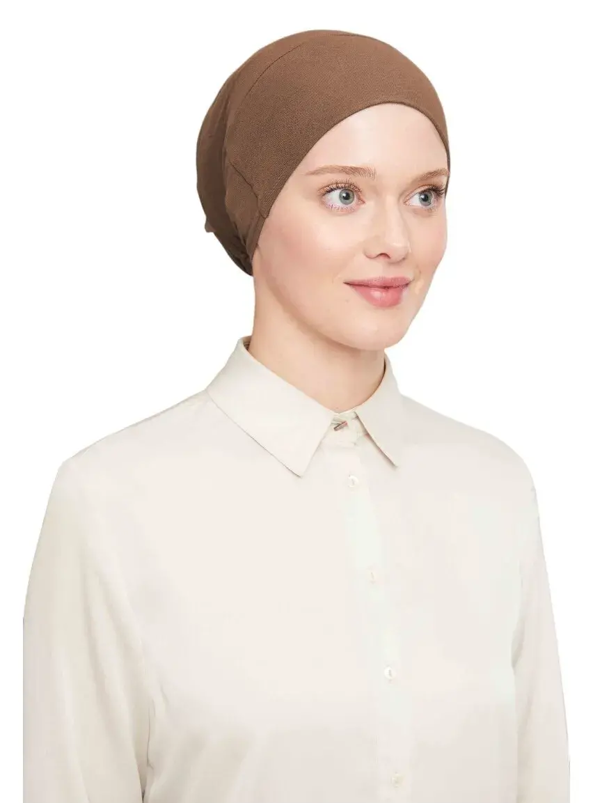 Lastikli Silikonlu Kaymaz Tesettür Bone Açık Kahverengi