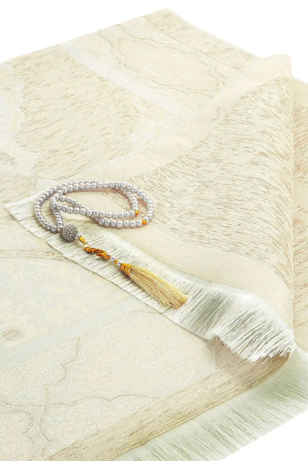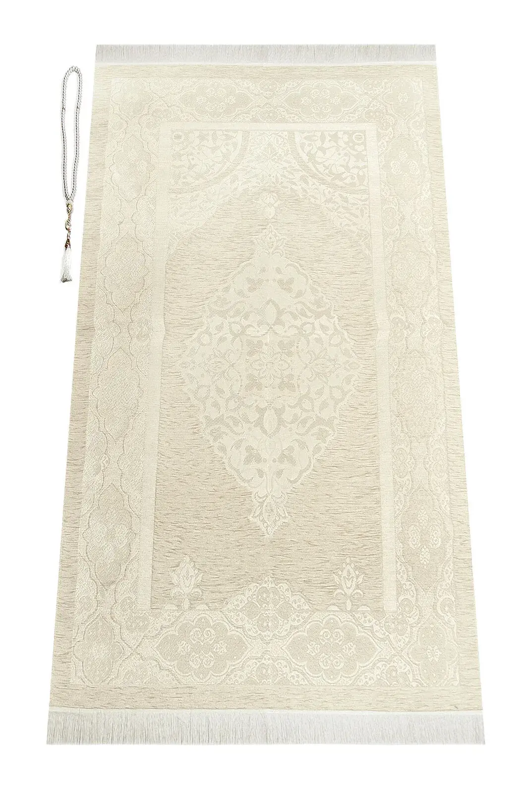 Lüks Açık Renk Osmanlı Şönil Seccade Tesbih Hediyeli Krem