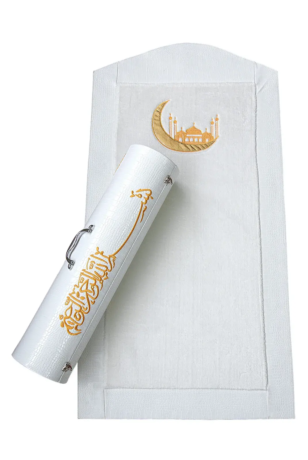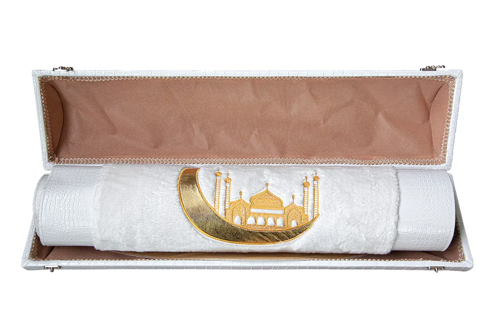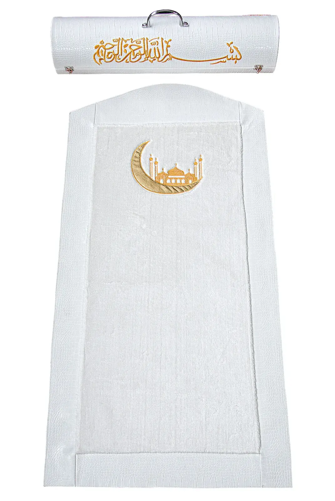 Lüks Deri Silindir Çantalı Peluş Seccade Beyaz