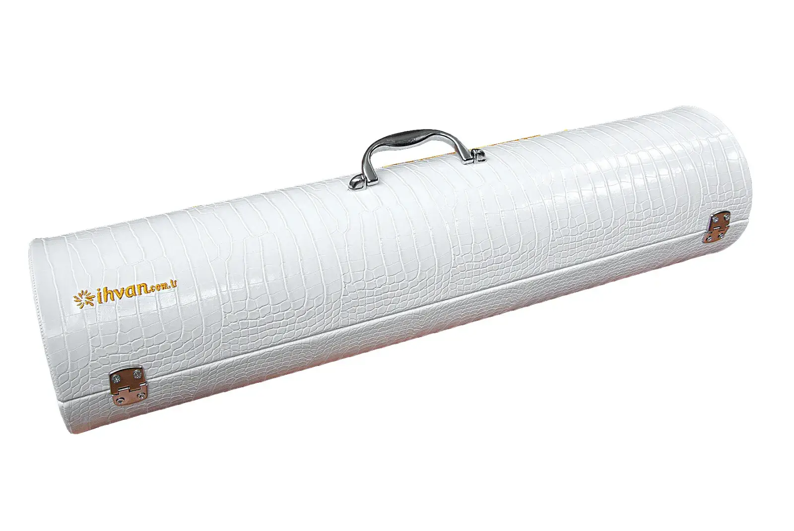 • Silindir deri çanta: Altın işlemeli, şık ve dayanıklı.