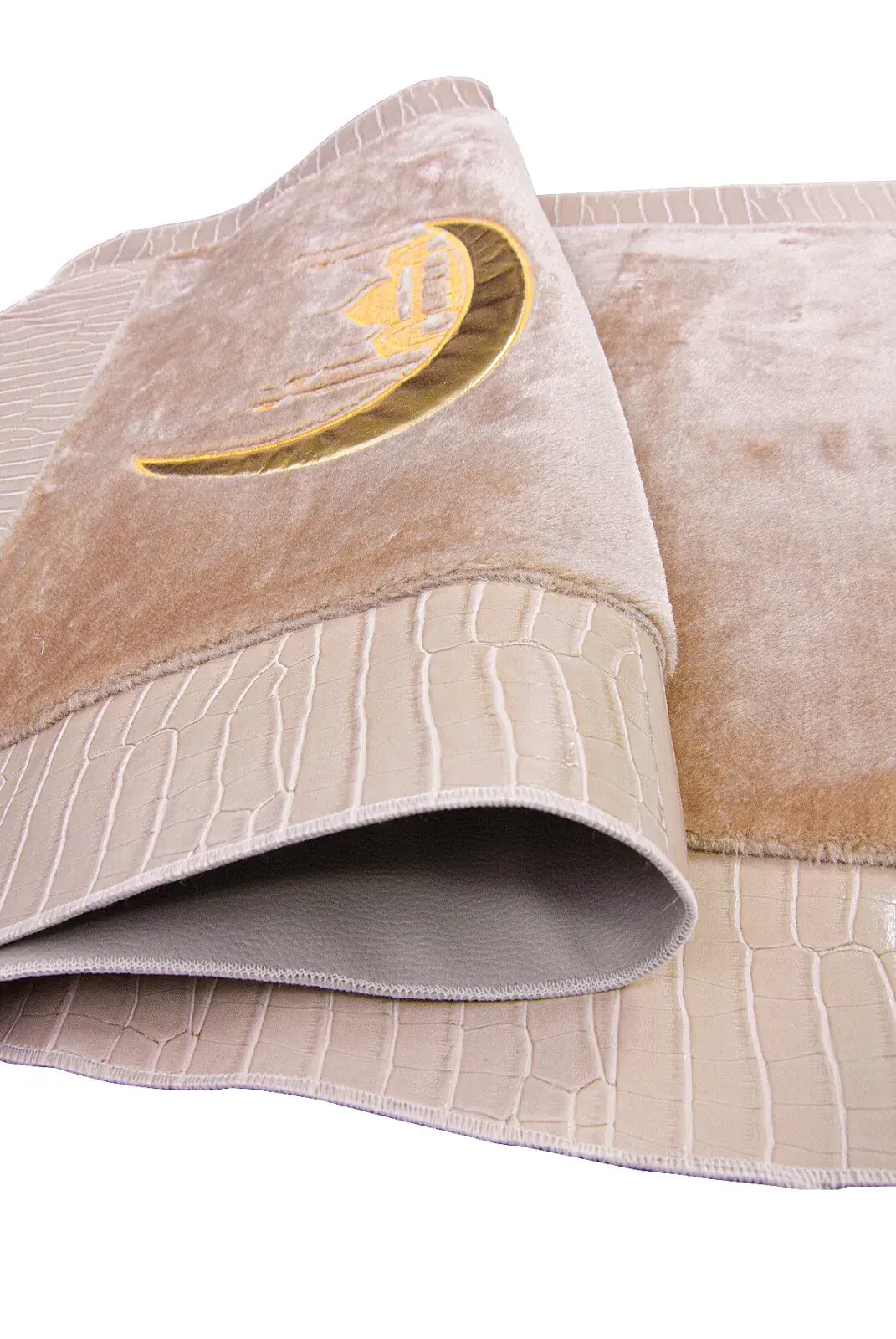 Lüks Deri Silindir Çantalı Peluş Seccade Krem