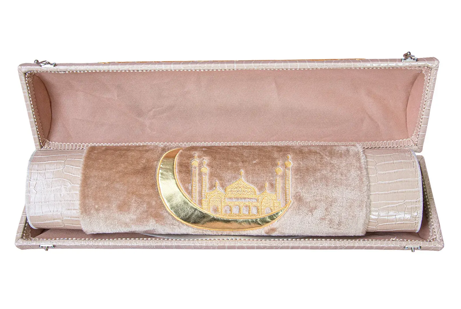 Taşımayı ve saklamayı kolaylaştıran bir tasarıma sahiptir. Altın işlemelerle süslenmiş bu şık çanta, seccadenizin temiz ve düzenli kalmasını sağlarken, seyahatlerde veya günlük kullanımlarda büyük bir kolaylık sunar. Hem işlevsel hem de estetik olan bu çanta, lüks bir yaşam tarzını yansıtır.
