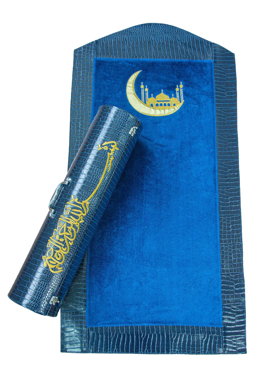 Lüks Deri Silindir Çantalı Peluş Seccade Lacivert