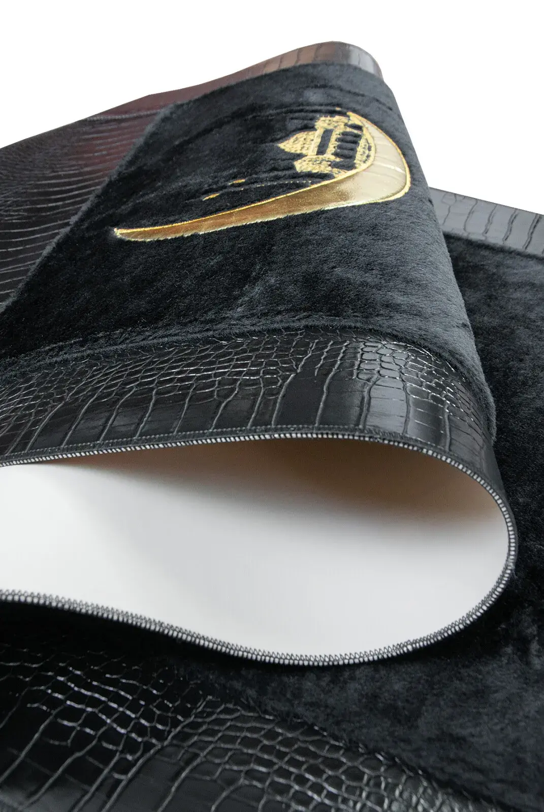 Taşımayı ve saklamayı kolaylaştıran bir tasarıma sahiptir. Altın işlemelerle süslenmiş bu şık çanta, seccadenizin temiz ve düzenli kalmasını sağlarken, seyahatlerde veya günlük kullanımlarda büyük bir kolaylık sunar. Hem işlevsel hem de estetik olan bu çanta, lüks bir yaşam tarzını yansıtır.