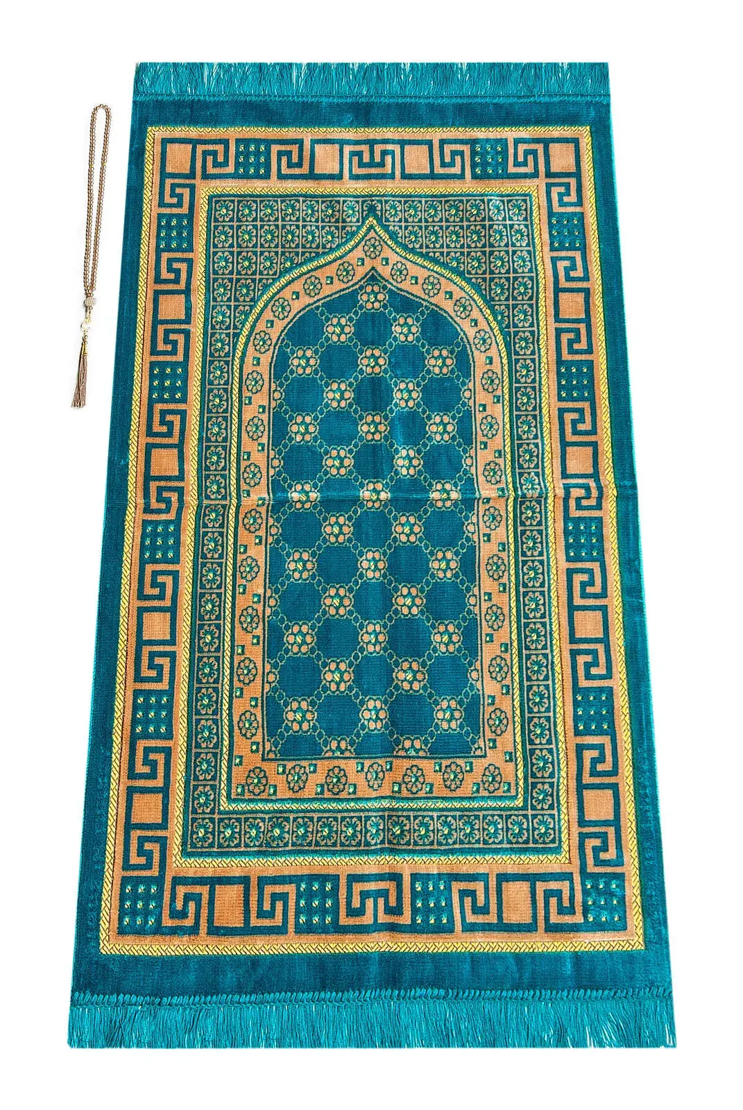 Lüks Kadife Şipinger Seccade Tesbih Hediyeli Petrol Renk