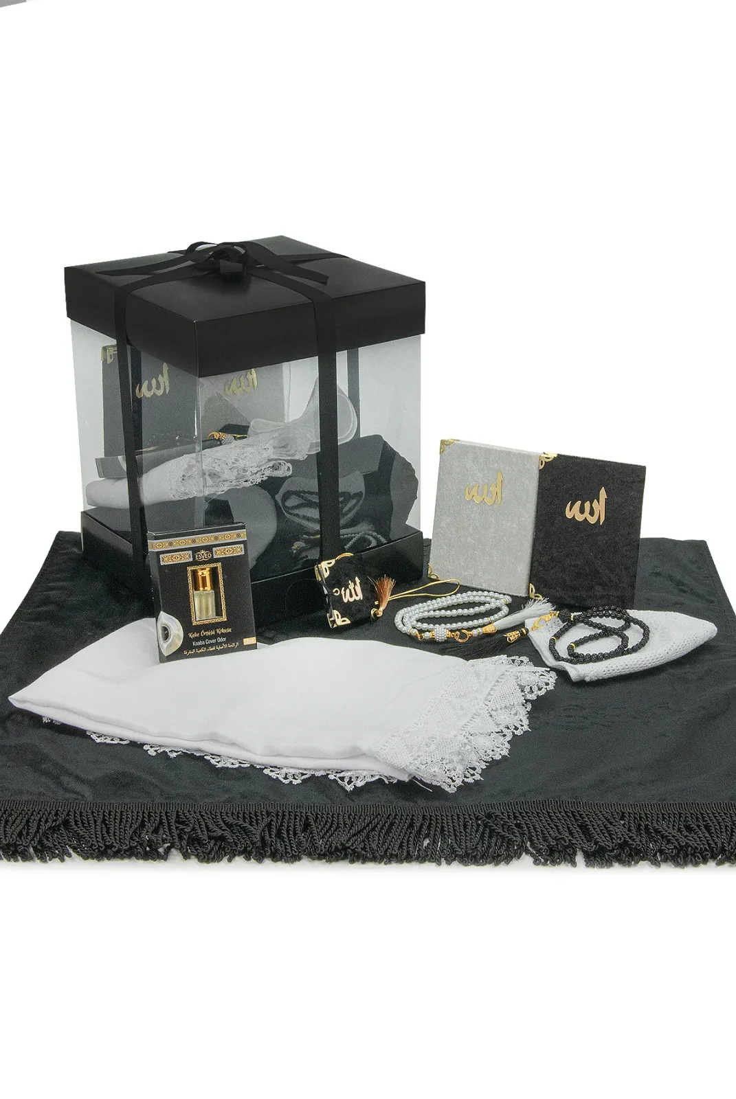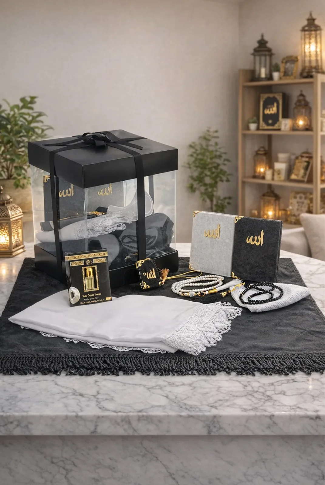 Lüks Özel PVC Kutu Hediyelik Çeyizlik İbadet Seti – Siyah, zarafeti, kaliteyi ve manevi değeri bir arada sunan özenle hazırlanmış özel bir hediye setidir. Şık siyah tasarımı, premium malzemeleri ve kapsamlı içeriğiyle hem çeyizlik hem de anlamlı bir hediye alternatifi olarak öne çıkar.