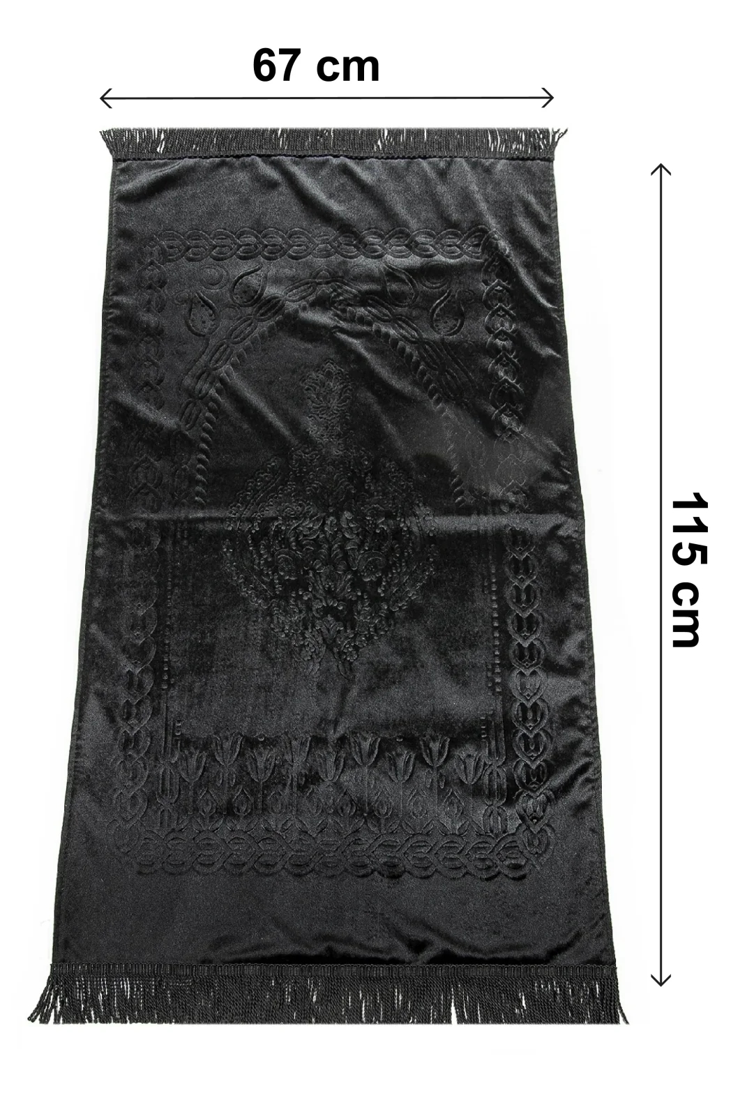 1 Adet İpeksi Polyester Dokuma, Süngerli, Bulyon Örgü Saçaklı Seccade (115 x 67 cm – 1000 gr)