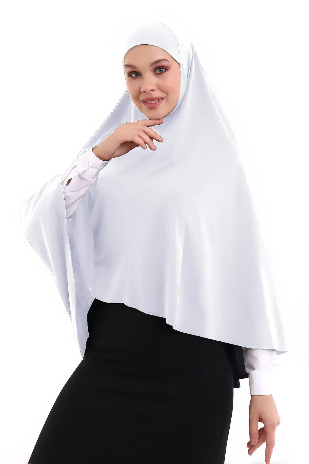 Malezya Model Pratik Çarşaf Üstü Kolsuz Tesettür Sufle Eşarp Beyaz