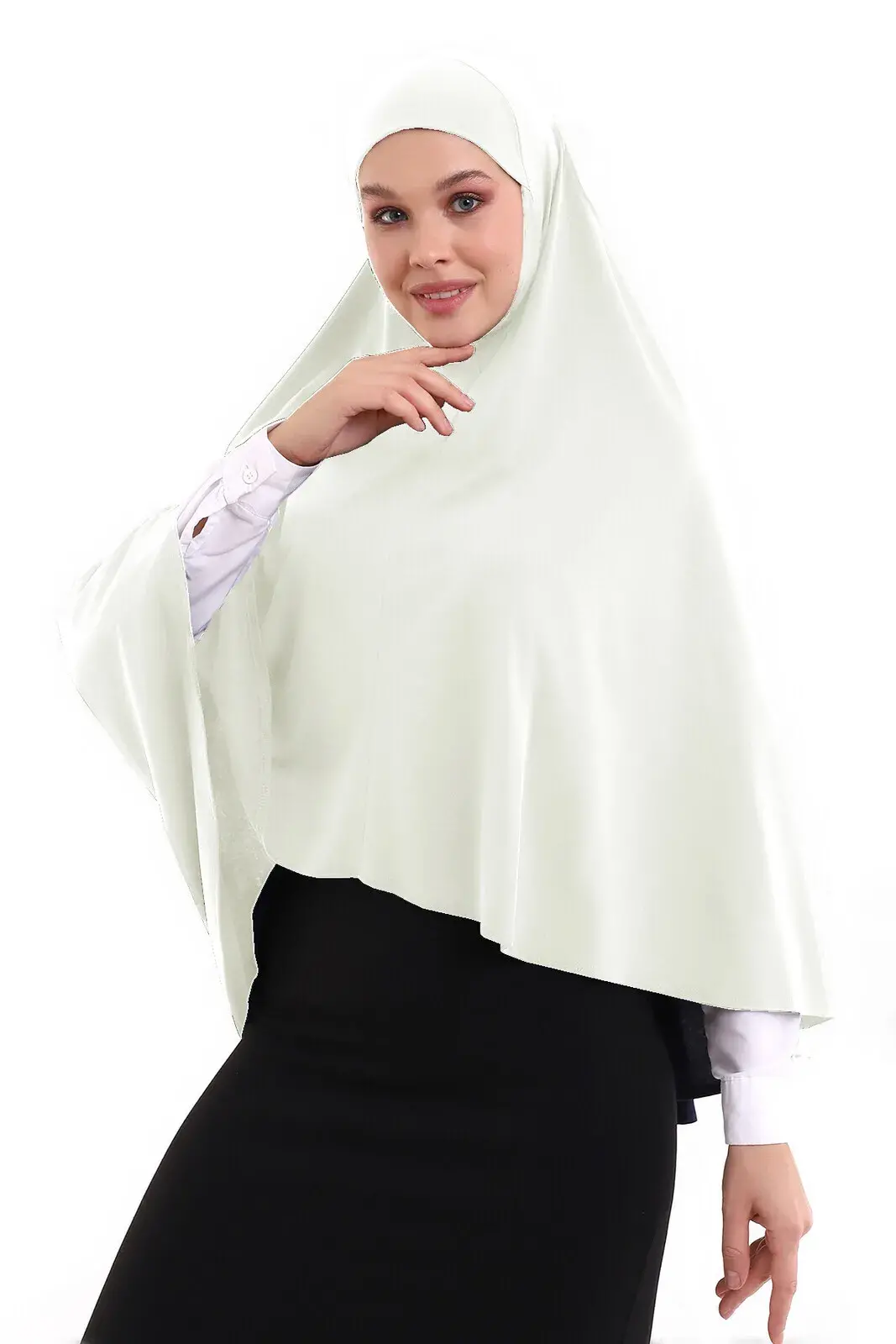 Malezya Model Pratik Çarşaf Üstü Kolsuz Tesettür Sufle Eşarp Krem