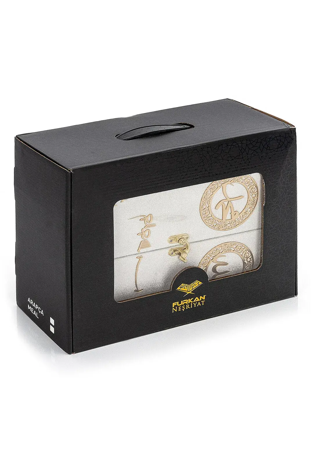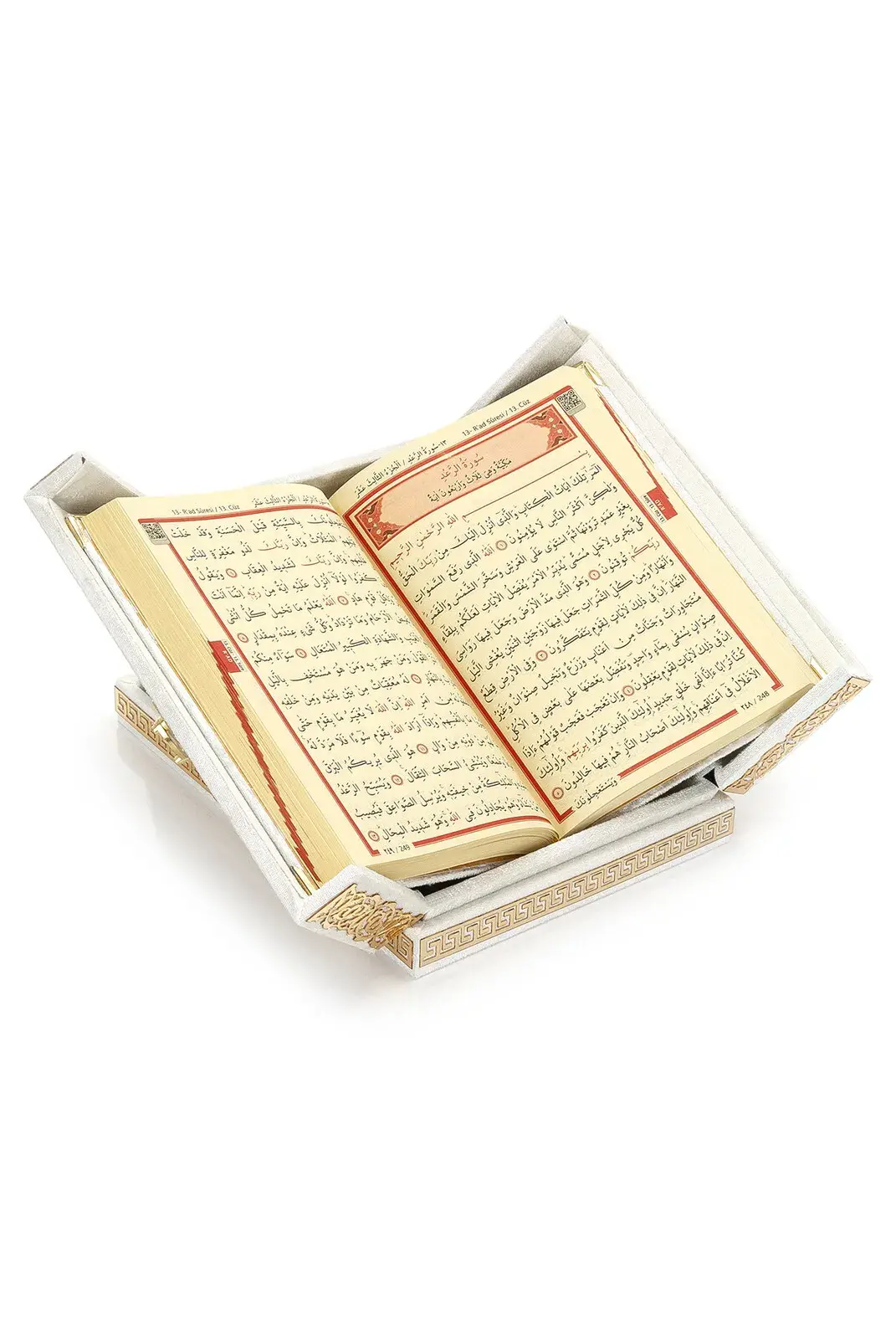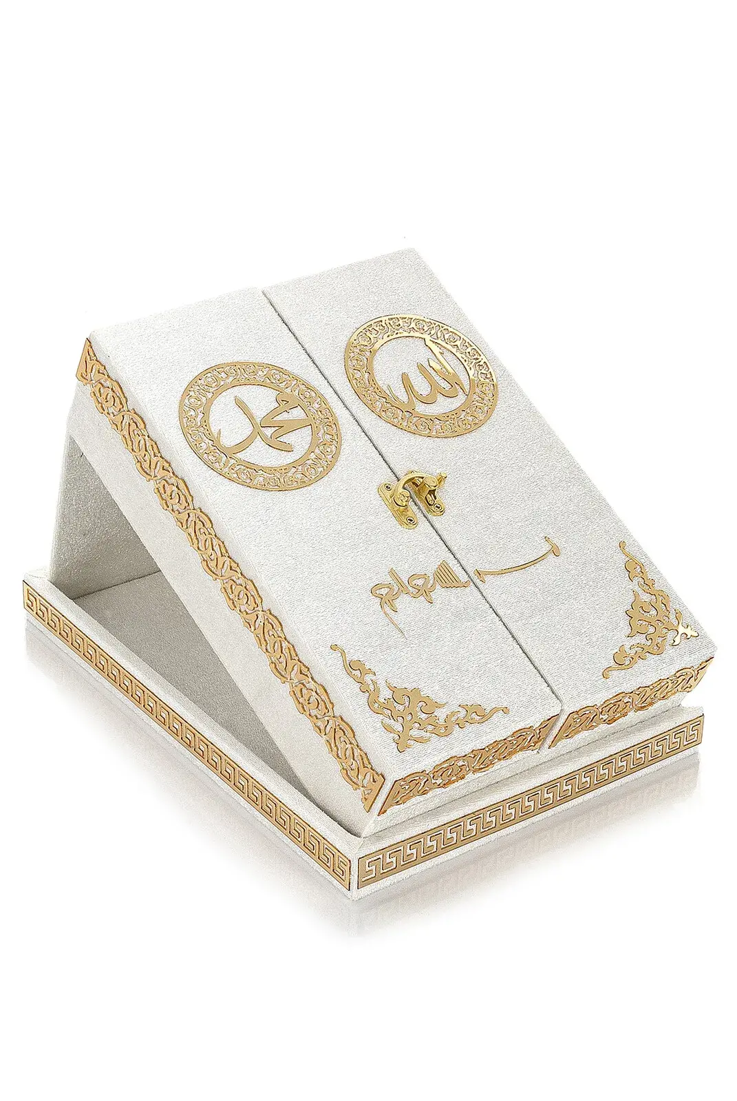 Masa Üstü Çift Kapaklı Kadife Kaplı Sandıklı Kuran Seti - Beyaz