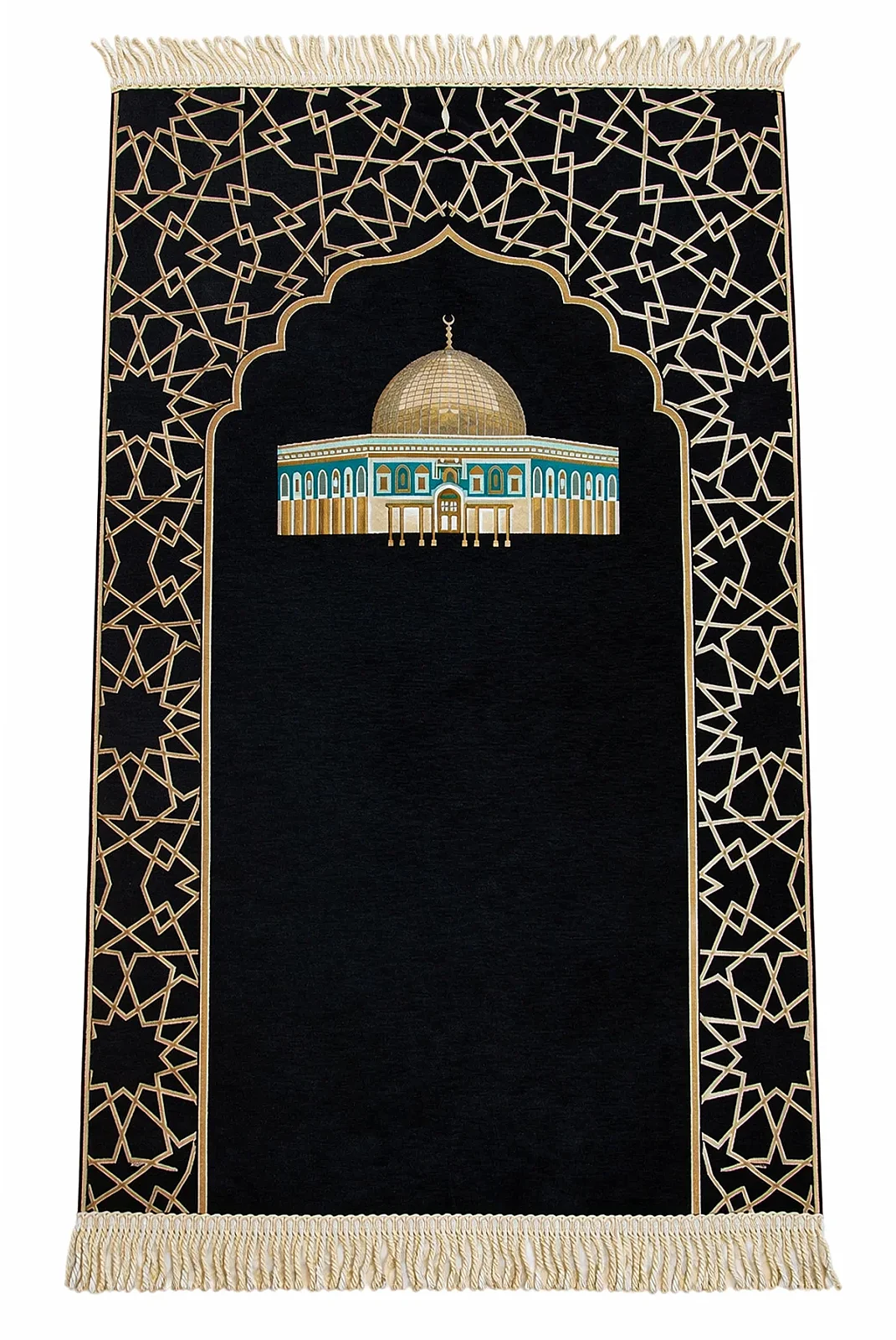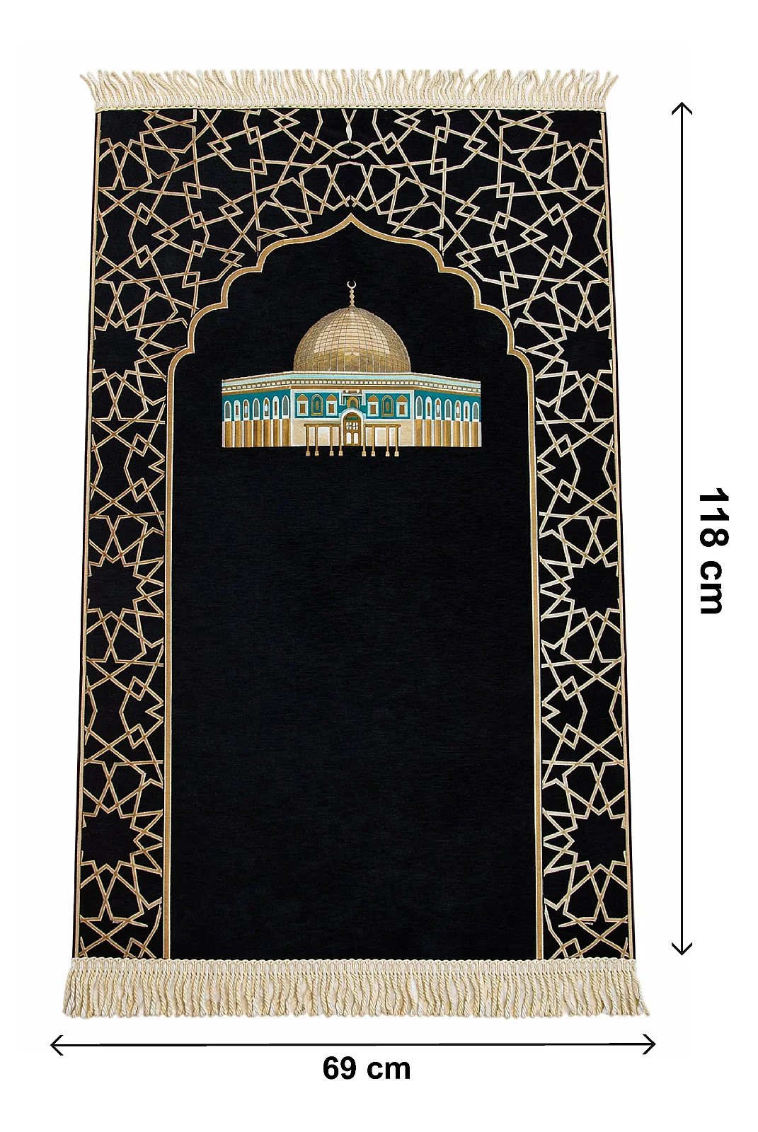 Mescidi Aksa Desenli Şönil Seccade - Siyah