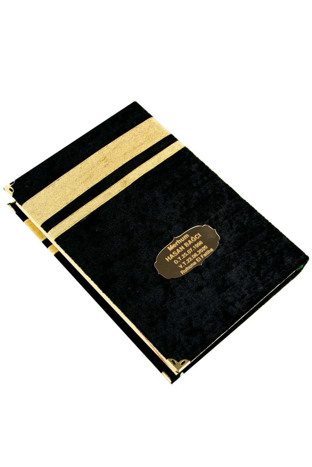 All velvet-covered Qurans have protective corner bars that allow pages to be damaged and the coated velvet fabric to remain stable.