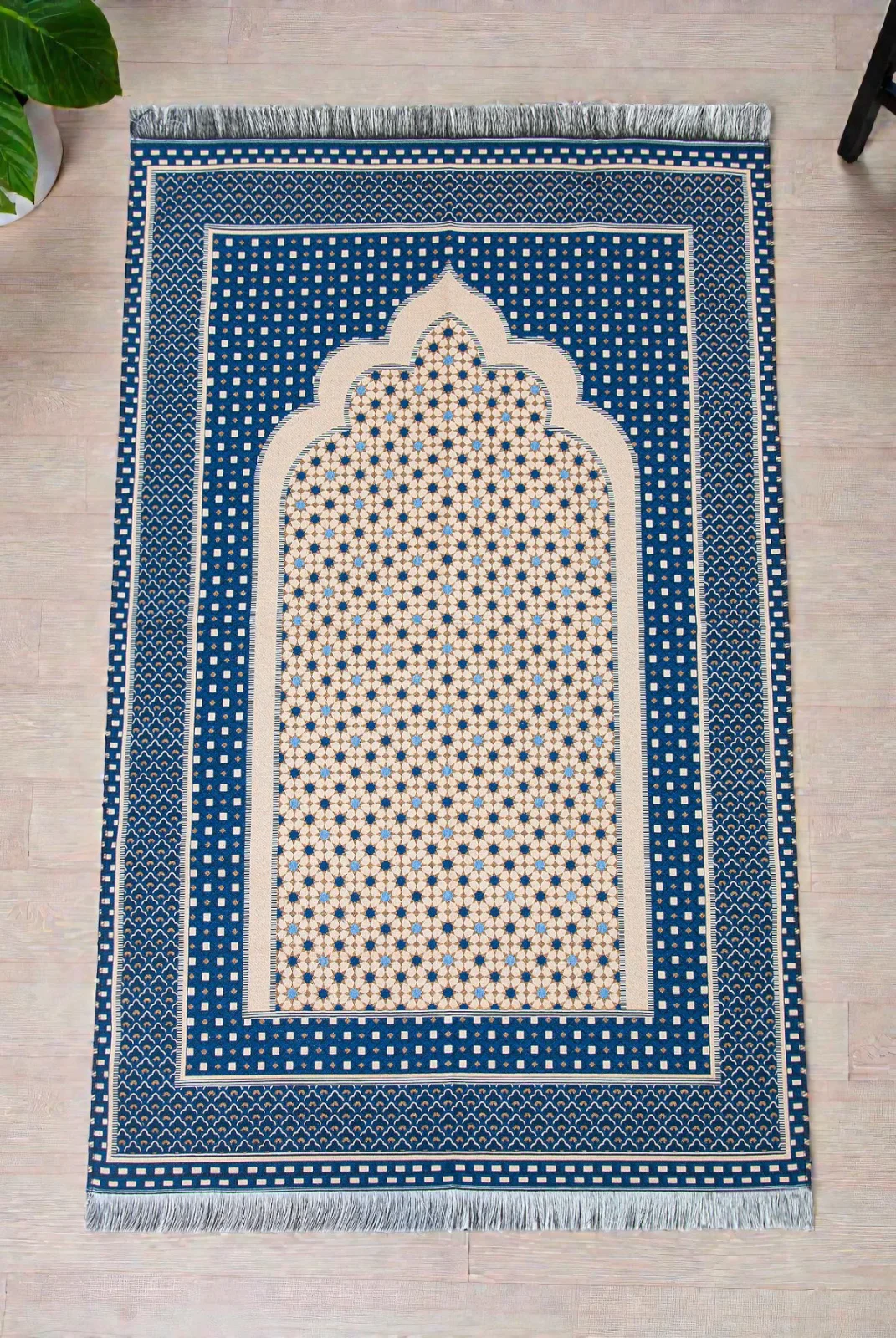 Hafif Taşınabilir Mihraplı Yıldız Desenli Goblen Seccade - Lacivert