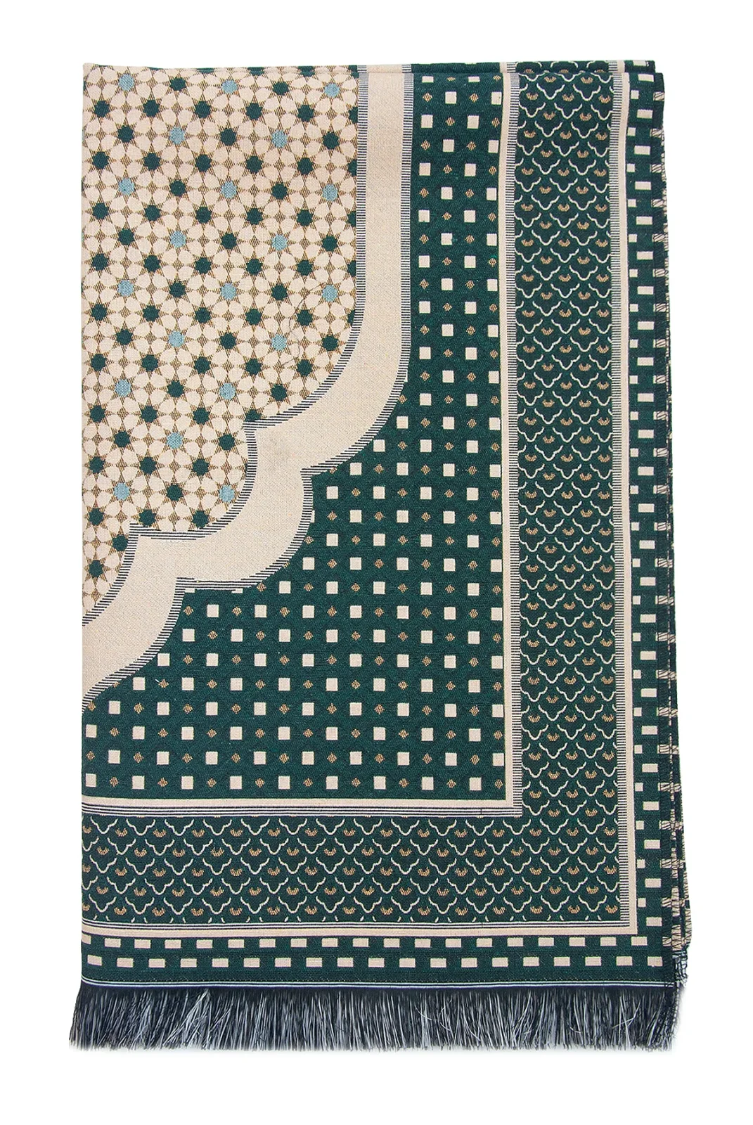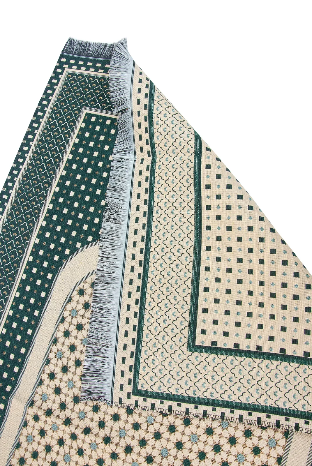 Hafif Taşınabilir Mihraplı Yıldız Desenli Goblen Seccade - Yeşil
