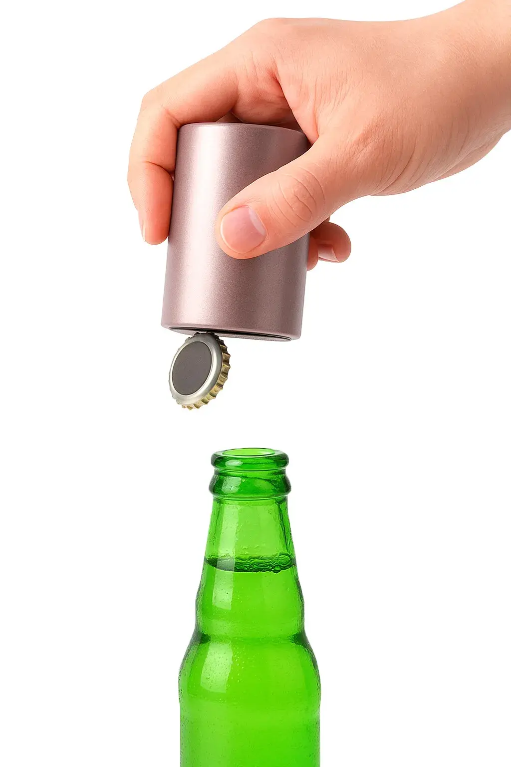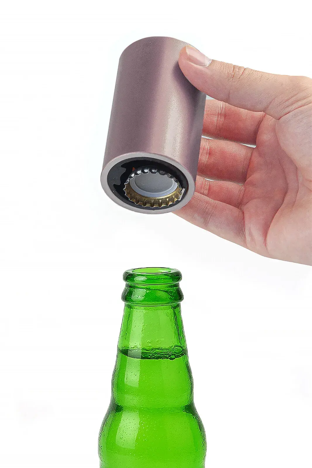 Şişe açmak artık çok kolay. Soğuk içeceğinizin kapağını açmak için yapmanız gereken tek şey Otomatik Şişe Açacağı şişenize üstten yerleştirmek, hafifçe bastırmak ve çekmek.