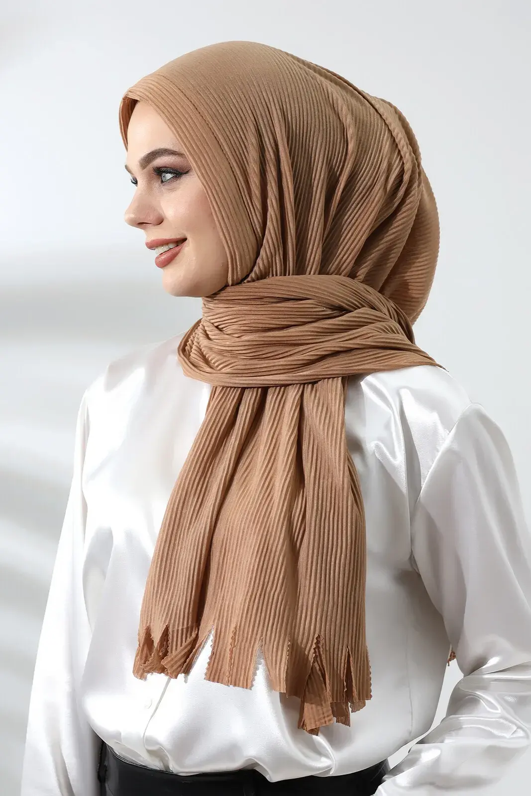 Milk Coffee Hijab Ready Made Practical Corded Cotton Shawl