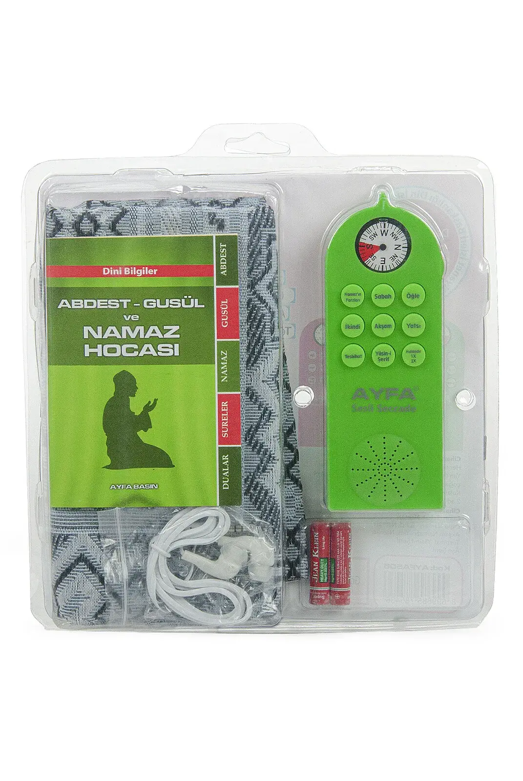 Çocuklar ve yetişkinlerin de kullanımı için özel olarak tasarlanmış bu set, dini eğitimi ve ibadet pratiğini desteklemek amacıyla özenle hazırlanmıştır. Set, namazın inceliklerini, abdestin ve temizliğin önemini öğretirken aynı zamanda onların dualarını ve ezanı öğrenmelerini sağlayan bir eğitim aracıdır. İçeriğinde öğretici ve pratik unsurlar bulunmaktadır.