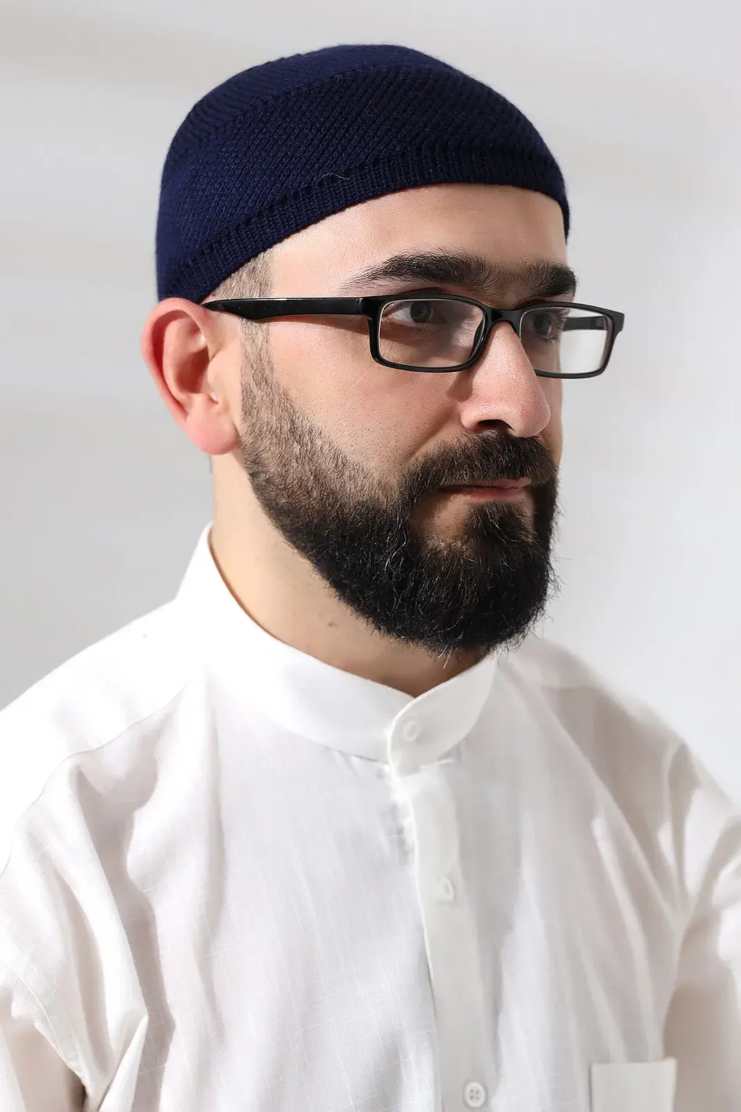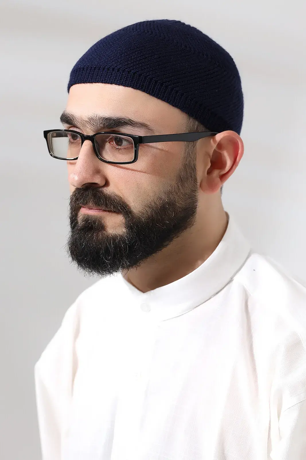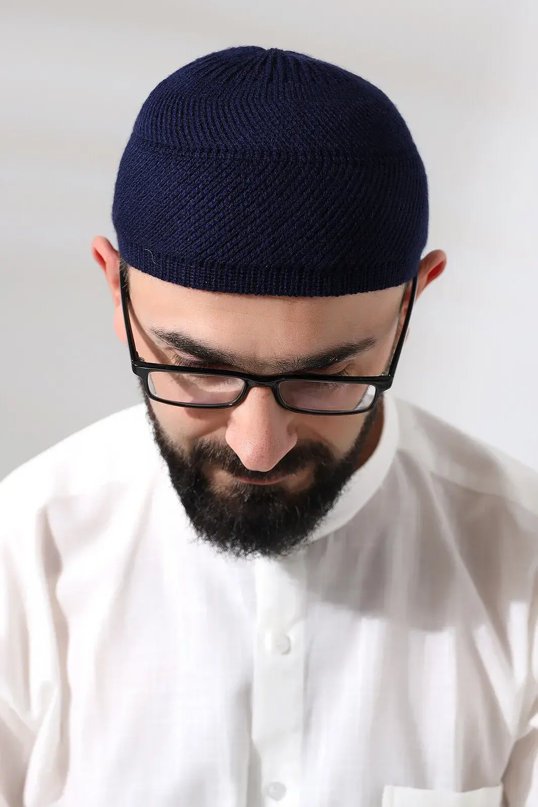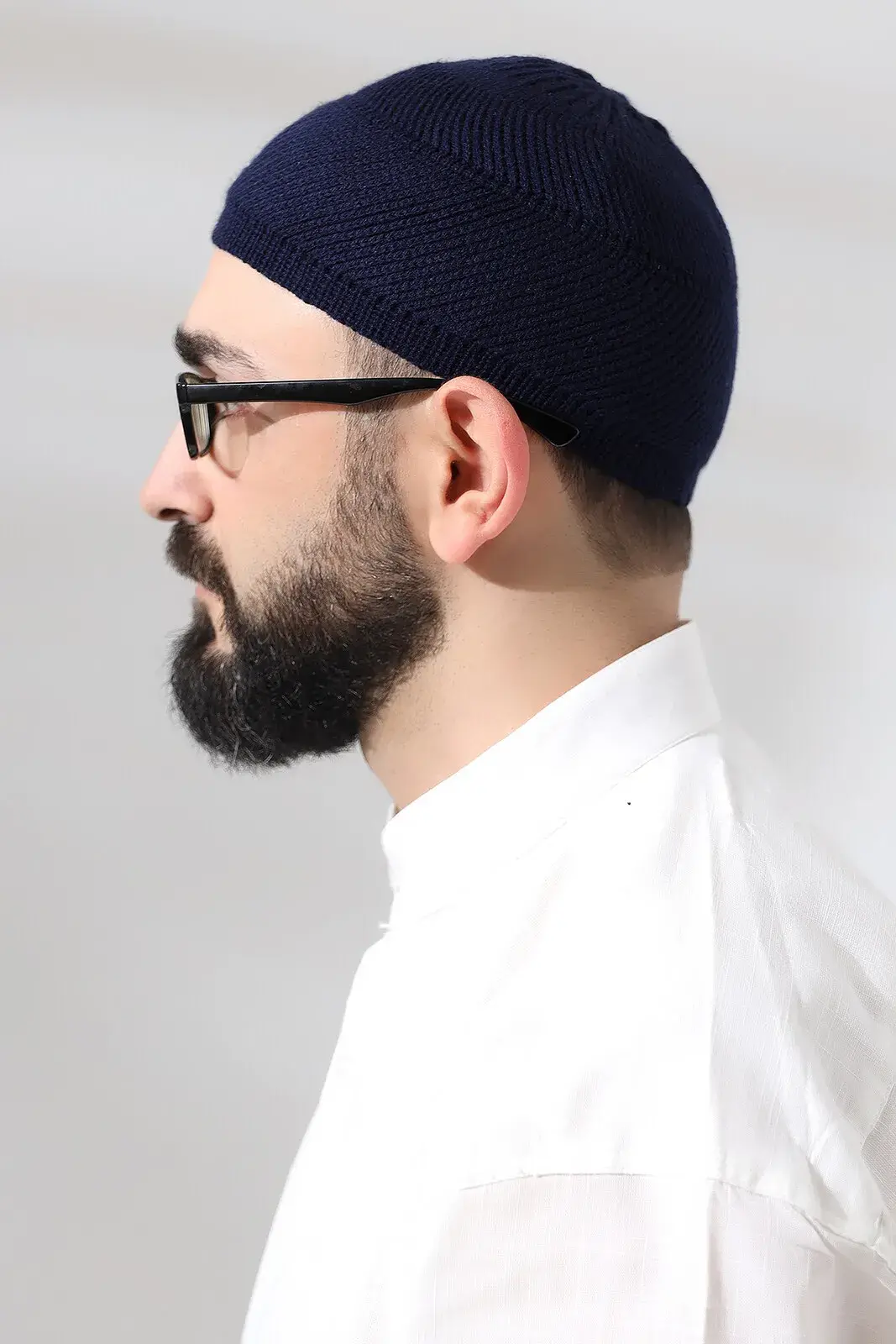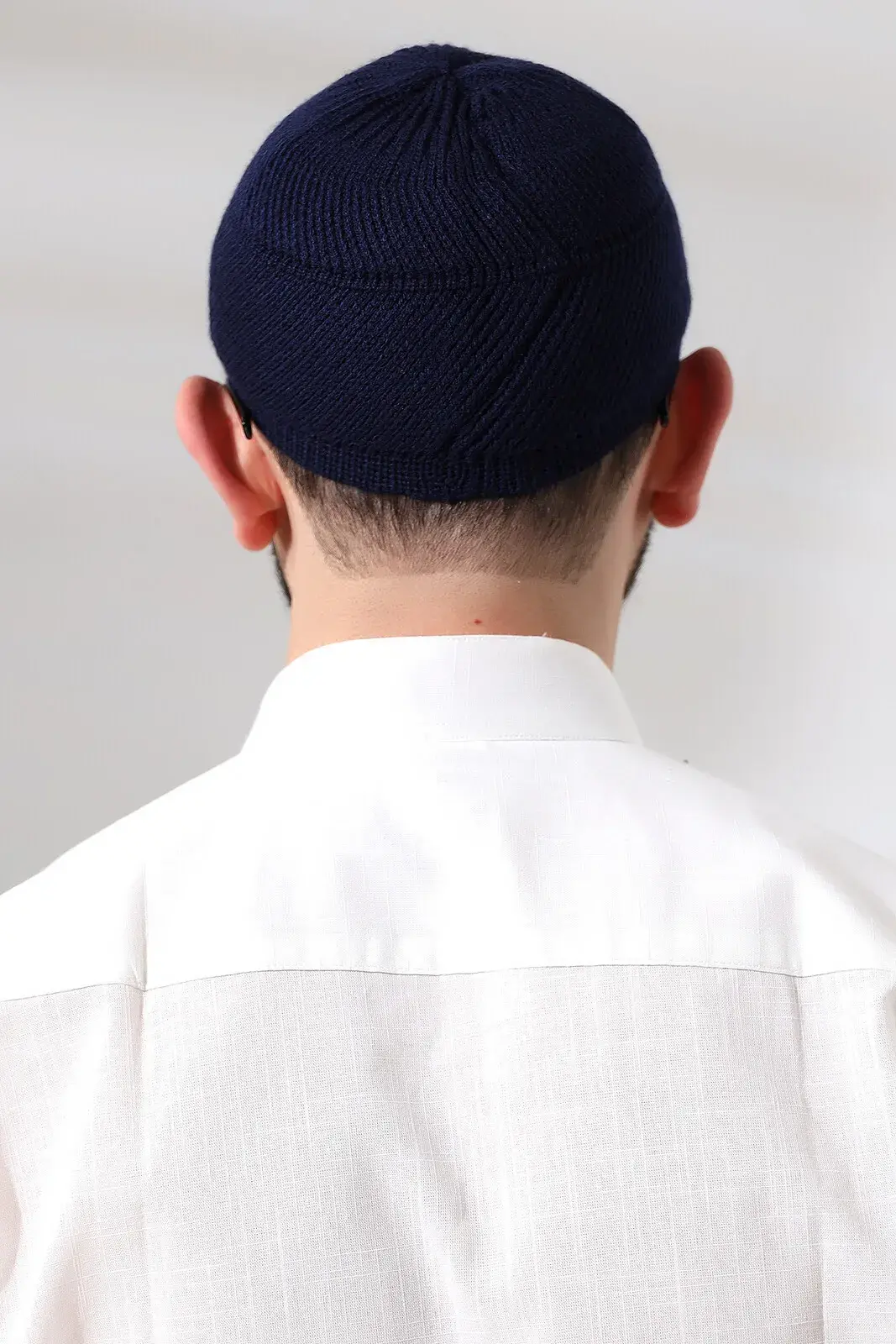 Navy Blue Super Prayer Lace Detailed Knitted Orlon Prayer Skull