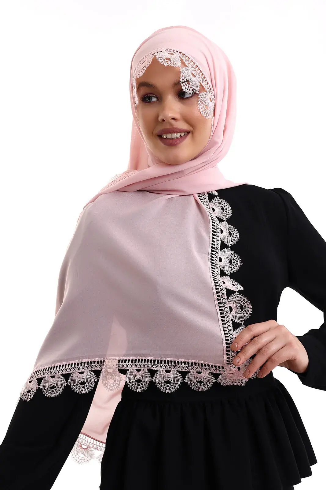 Needle Lace Lacy Scarf Demor Mevlüt Cover Powder