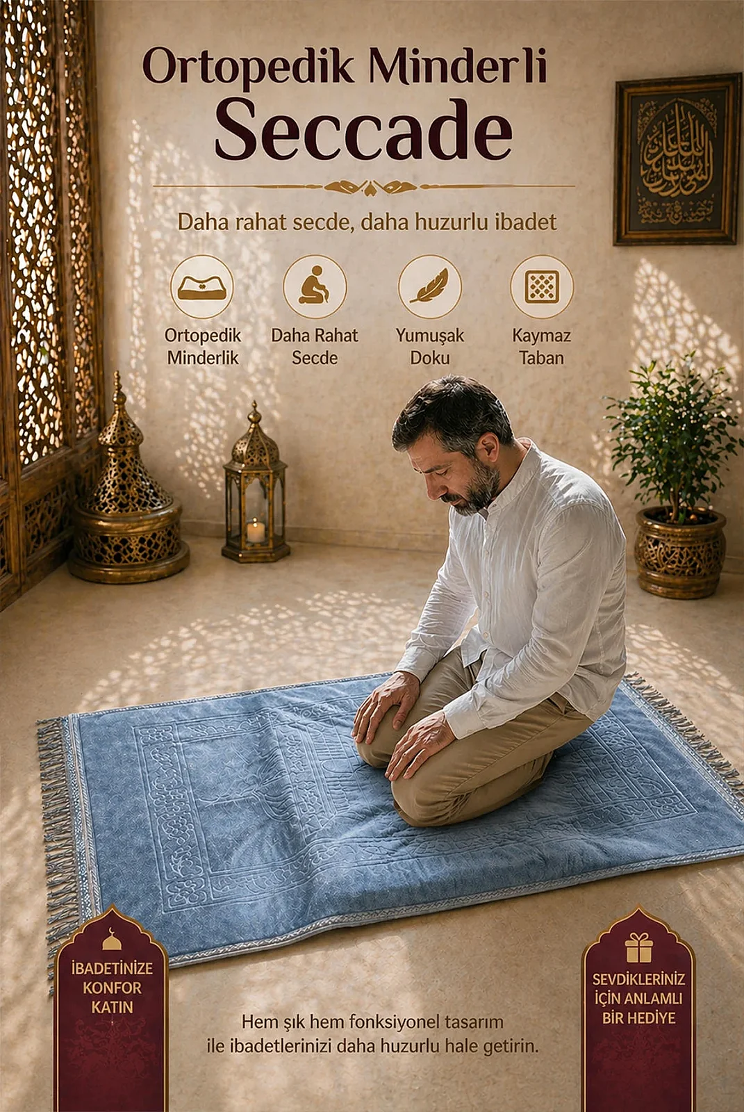 Fonksiyonel yapısı ve konfor odaklı tasarımı ile ibadetlerinizi daha huzurlu hale getirir.